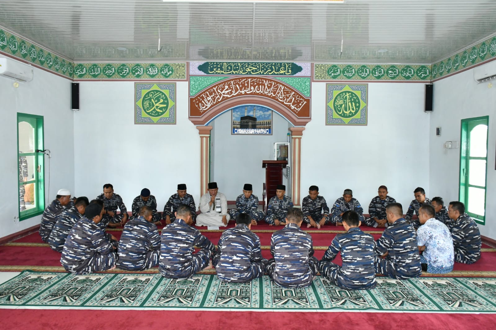 Dengan mengenakan seragam PDL TNI AL, acara doa bersama dipimpin oleh Ustadz Supratman sebagai pemimpin doa dan diikuti oleh Prajurit dan PNS Lanal Sibolga.