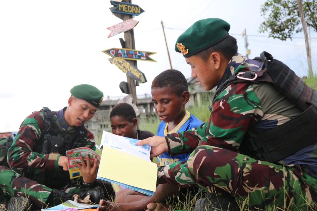 Sementara itu, Basiter Satgas Mobile Yonif 411 Kostrad Sertu Ismail mengatakan, mantap adik-adik ini meskipun libur sekolah tetap datang untuk belajar dan bermain ke pos.