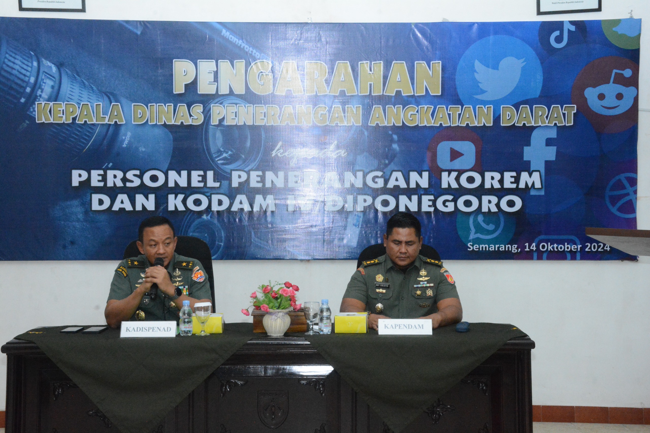 SEMARANG, tniad.mil.id – Kepala Dinas Penerangan Angkatan Darat (Kadispenad), Brigjen TNI Wahyu Yudhayana, S.E., M.M., menegaskan pentingnya menjaga kekompakan dan bekerja dengan sepenuh hati, kepada jajaran Penerangan Kodam IV/Diponegoro. Hal ini disampaikannya saat kunjungan kerja dalam rangka Asistensi Fungsi Penerangan TNI AD di Semarang, Senin (14/10/2024).