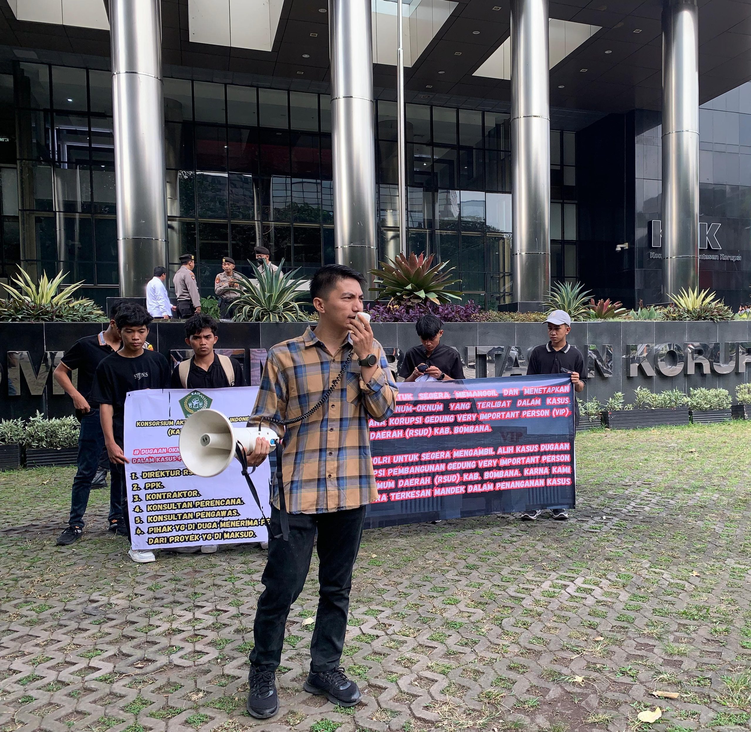Aksi Demonstrasi dilatarbelakangi adanya dugaan kasus tindak pidana korupsi pembangunan gedung Very Important Person (VIP) Rumah Sakit Umum Daerah (RSUD) Kabupaten Bombana.