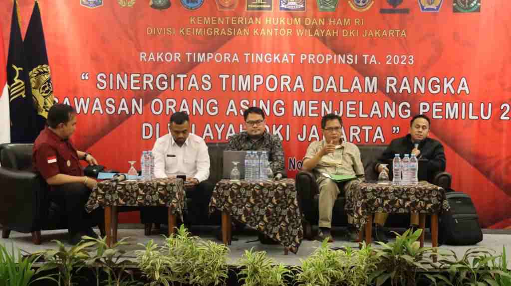 Kantor Wilayah Kementerian Hukum dan HAM DKI Jakarta pun hadir dan berupaya meningkatkan kerja sama dengan berbagai Kementerian dan Lembaga dalam rangka pengawasan orang asing di wilayah DKI Jakarta. Kepala Kantor Wilayah, Ibnu Chuldun, membuka kegiatan Rapat Koordinasi Tim Pengawasan Orang Asing (Timpora) bertema “Sinergitas Timpora Dalam Rangka Pengawasan Orang Asing Menjelang Pemilu 2024 di Wilayah DKI Jakarta”, Rabu (15/11/2023) Bertempat di Hotel Grand Sahid Jaya, kegiatan ini turut dihadiri oleh Kepala Divisi Keimigrasian serta Anggota Timpora DKI Jakarta.
