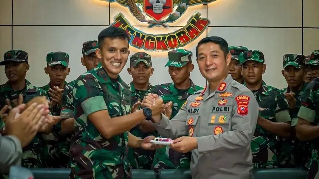 “Sengaja saya datang dan pimpin langsung pasukan dari Polres Karawang, untuk memberikan surprise kepada saudara kami di HUT ke-77 Tentara Nasional Indonesia,” ungkap AKBP Aldi.