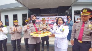 Kedatangan perwakilan Kapolrestabes Bandung dengan membawa kejutan berupa Kue Tart sebagai ucapan selamat memperingati HUT TNI ke -77 Tahun 2022.