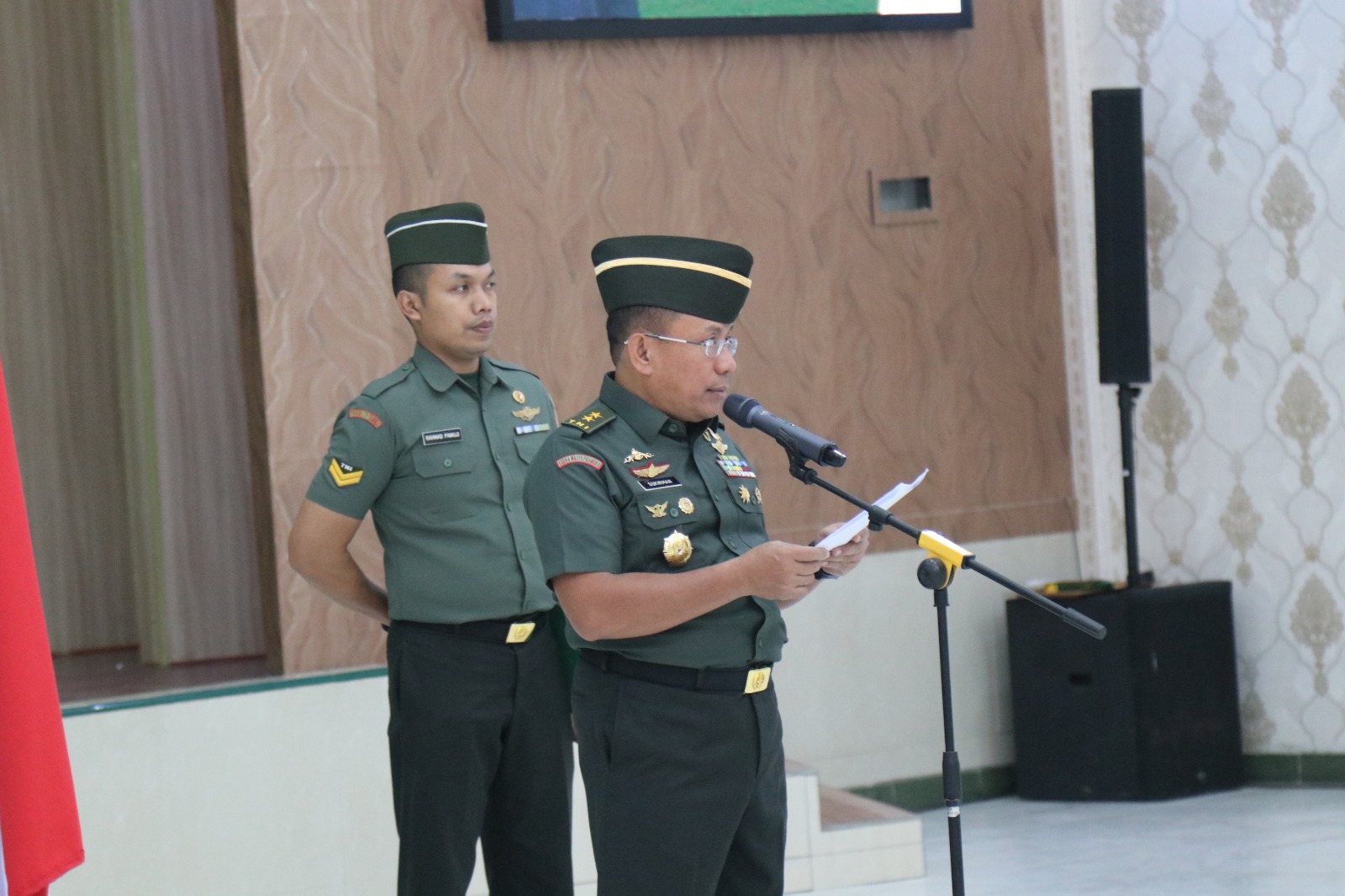 Kepala Pusat Kesehatan TNI Angkatan Darat (Kapuskesad) Mayjen TNI Dr. dr. Sukirman, S.H., Sp.KK., M.Kes., FINSDV., FAADV., didampingi Ketua Persit Cabang XIV Puskesad Ny. Ambar Sukirman, menerima laporan korps kenaikan pangkat 38 personel Puskesad, meliputi Perwira Menengah, Perwira Pertama, Bintara, Tamtama, dan PNS.