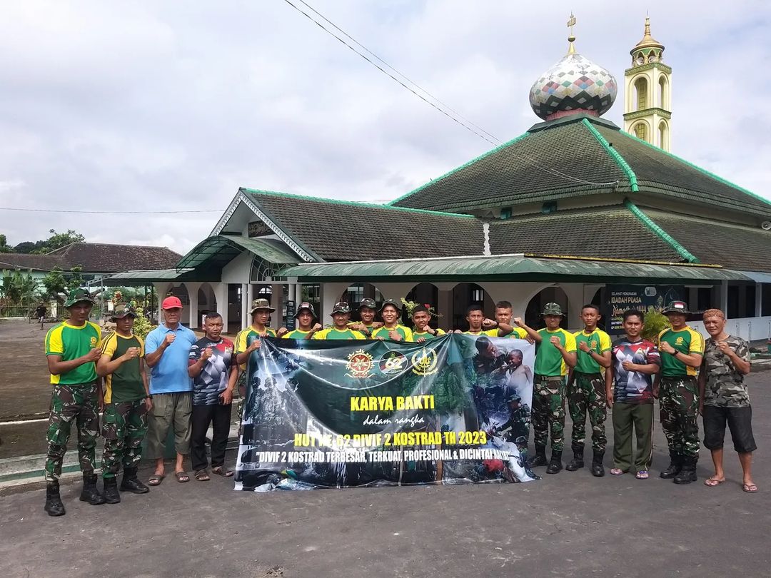 Pagi ini puluhan prajurit Yonarhanud 2 Kostrad dipimpin Letda Arh Rifki melaksanakan pembersihan Masjid Hidayaturrahman Brawijaya Malang yang berlokasi di Jl. Urip Sumoharjo Kel. Kesatrian kec Blimbing dalam rangka memperingati HUT Divisi Infanteri 2 Kostrad.