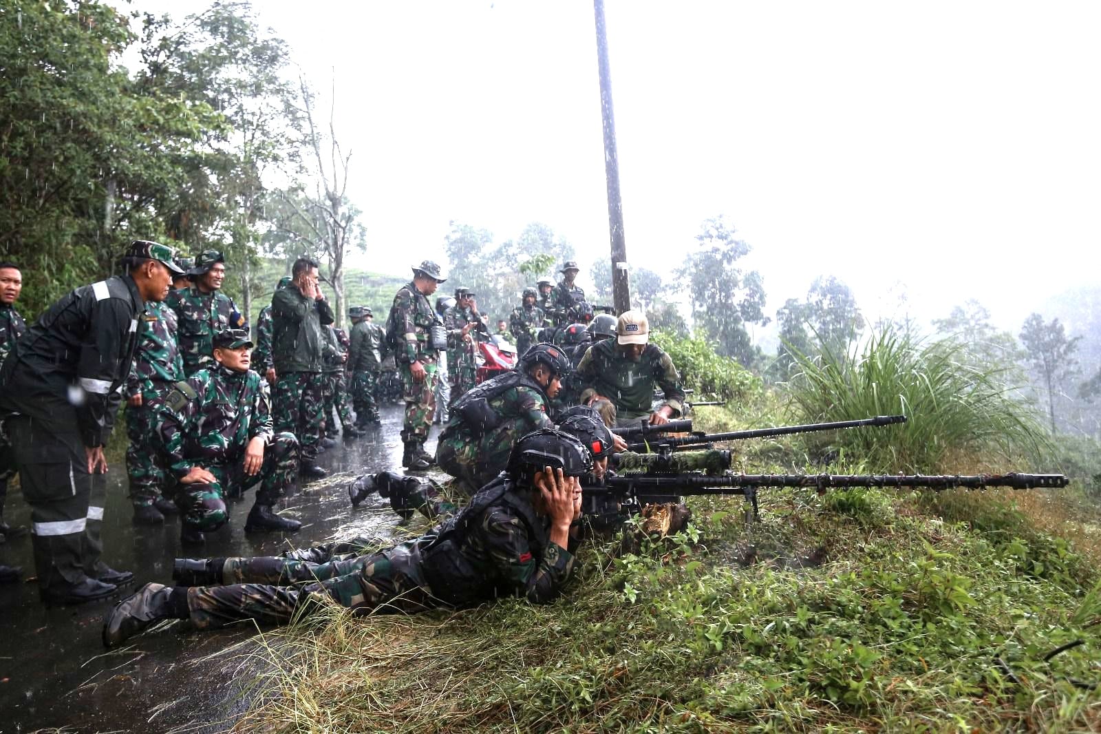 Pada kesempatan itu walaupun terik panas matahari menyengat hingga hujan mengguyur tiap saat, tidak menyurutkan Pangdam untuk terus bersama dan mengamati dengan seksama pelaksanaan latihan yang dilakukan prajuritnya.