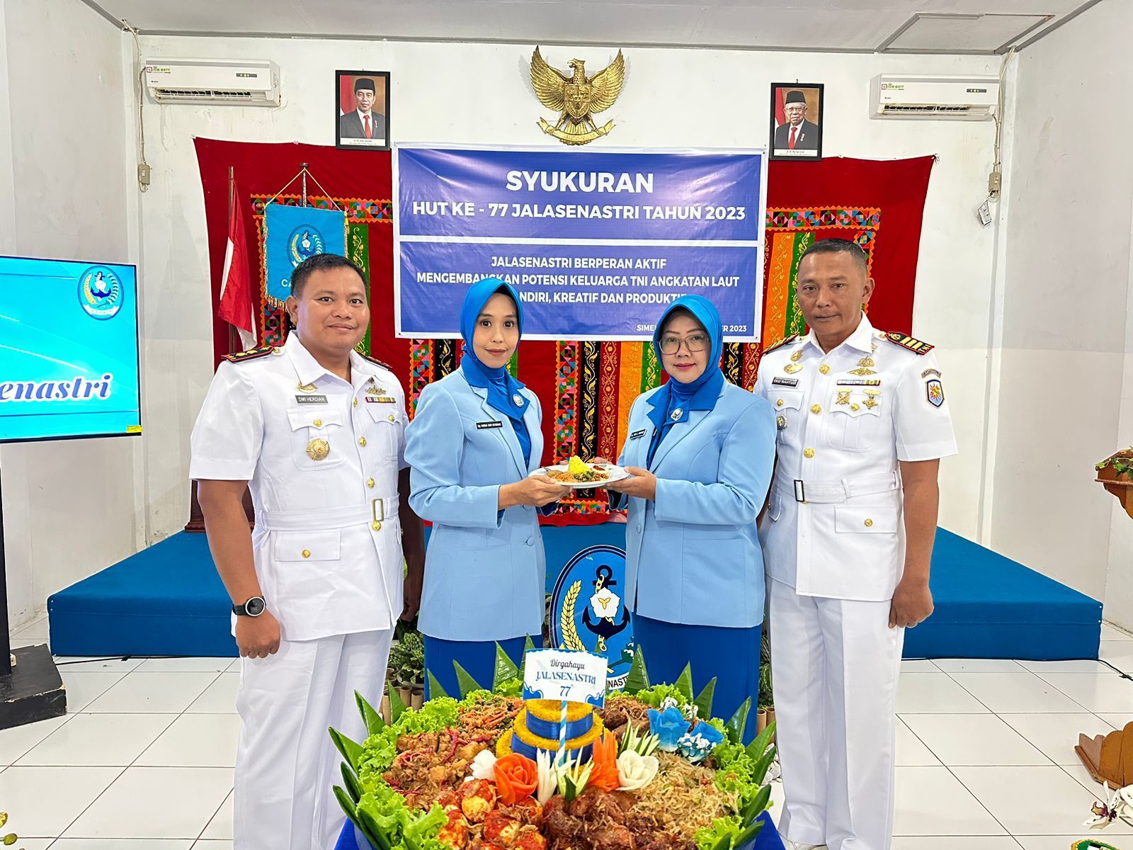 Memaknai tema “Dengan Semangat Jalasveva Jayamahe, Terus Melaju Untuk Indonesia Maju” dan “Jalasenastri Berperan Aktif Mengembangkan Potensi Keluarga TNI Angkatan Laut Yang Mandiri Kreatif dan Produktif”, acara syukuran ini dilaksanakan secara khidmat serta dipenuhi rasa syukur.
