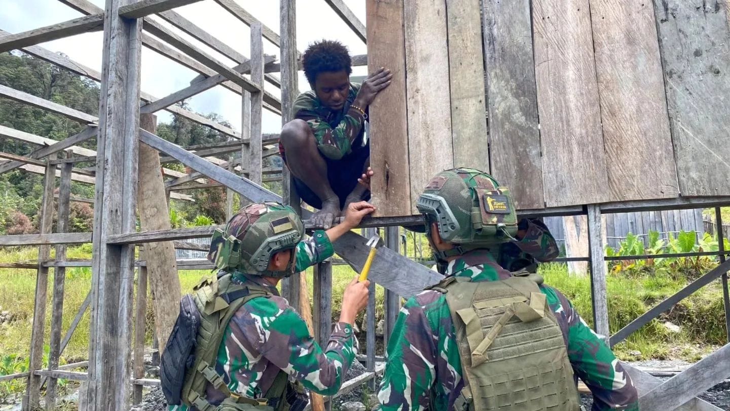 MetropolitanPost.id – Sebagai wujud kemanunggalan TNI dan Rakyat, Satgas Yonif 432/WSJ Pos Dal, gotong royong membantu pembangunan rumah salah satu warga masyarakat yang tidak layak huni di Distrik Dal, Papua. Senin (22/04/2024)