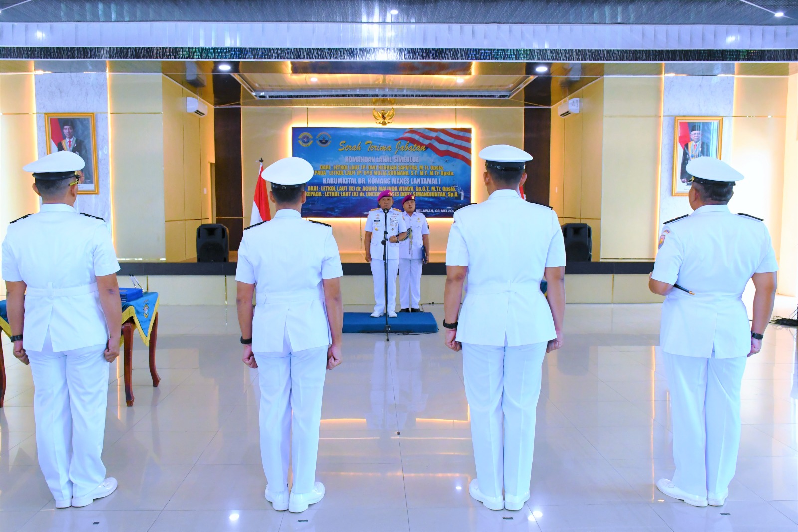 MetropolitanPost.id – Serah Terima Jabatan Komandan Lanal Simeulue diserah terimakan dari Letkol Laut (P) Dwi Herdian Saputra, M.Tr.Opsla., kepada Letkol Laut (P) Oyu Mulia Sukmana S.T., M.T., M.Tr. Opsla., yang dipimpin langsung oleh Komandan Pangkalan Utama TNI AL I Brigjen TNI (MAR) Jasiman Purba, S.E., CHRMP., bertempat di Gedung O.B. Syaa’f Mako Lantamal I Belawan, Sumatra Utara Jum’at (03/05/2024).