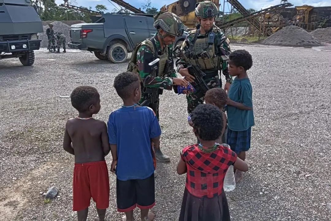 MetropolitanPost.id – Satgas Pamtas Mobile RI-PNG Yonif 503/Mayangkara Koops Habema berbagi kebahagiaan dengan membagikan permen bagi anak – anak Kota Kenyam, Kabupaten Nduga Papua. Selasa (20/08/2024).