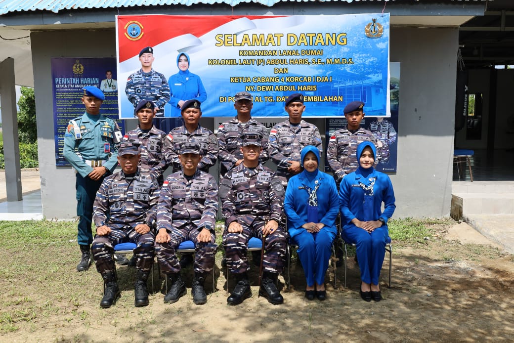 TNI AL, Dumai,- Dalam rangka memastikan kesiapsiagaan unsur Posal jajaran Lanal Dumai, Komandan Pangkalan TNI Angkatan Laut Dumai Kolonel Laut (P) Abdul Haris didampingi Ketua Jalasenastri Cabang 4 Korcab l DJA l Ny. Dewi Abdul Haris, bersama rombongan melaksanakan kunjungan ke Posal Tanjung Datu dan Posal Kuala Enok, Senin (28/04/2025).