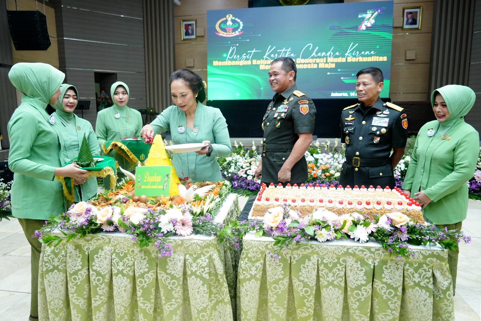 “Saya juga ingin menyampaikan salam hangat dari Kepala Staf Angkatan Darat selaku Pembina Utama Persit Kartika Chandra Kirana, kepada seluruh anggota Persit. Beliau titip pesan agar Persit Kartika Chandra Kirana, dapat terus berkarya dan bekerja dengan ikhlas, serta turut mewujudkan keluarga Indonesia yang tangguh, mandiri, dan berkualitas,” kata Ibu Rahma Dudung Abdurachman.
