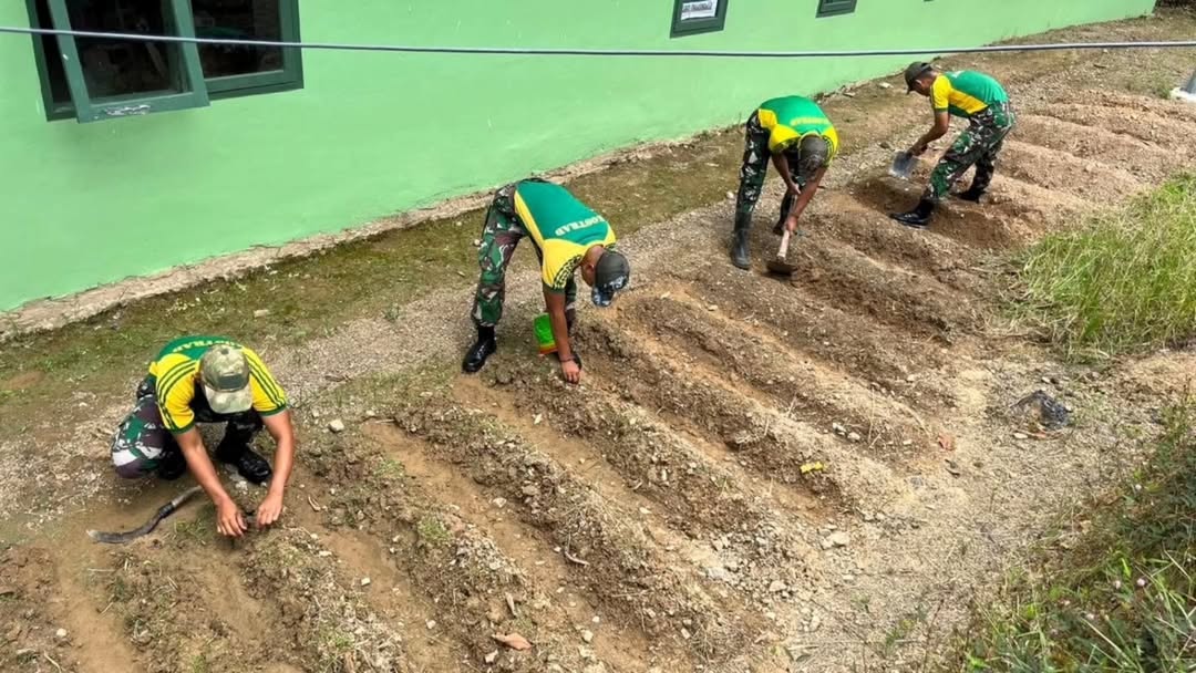 Kegiatan ini bertujuan untuk menciptakan ketersediaan bahan pangan secara mandiri bagi personel pos serta menjadi inspirasi bagi masyarakat setempat dalam memanfaatkan lahan kosong secara produktif. Jenis sayuran yang ditanam antara lain kangkung, bayam, dan sawi yang mudah tumbuh di kondisi tanah sekitar pos.
