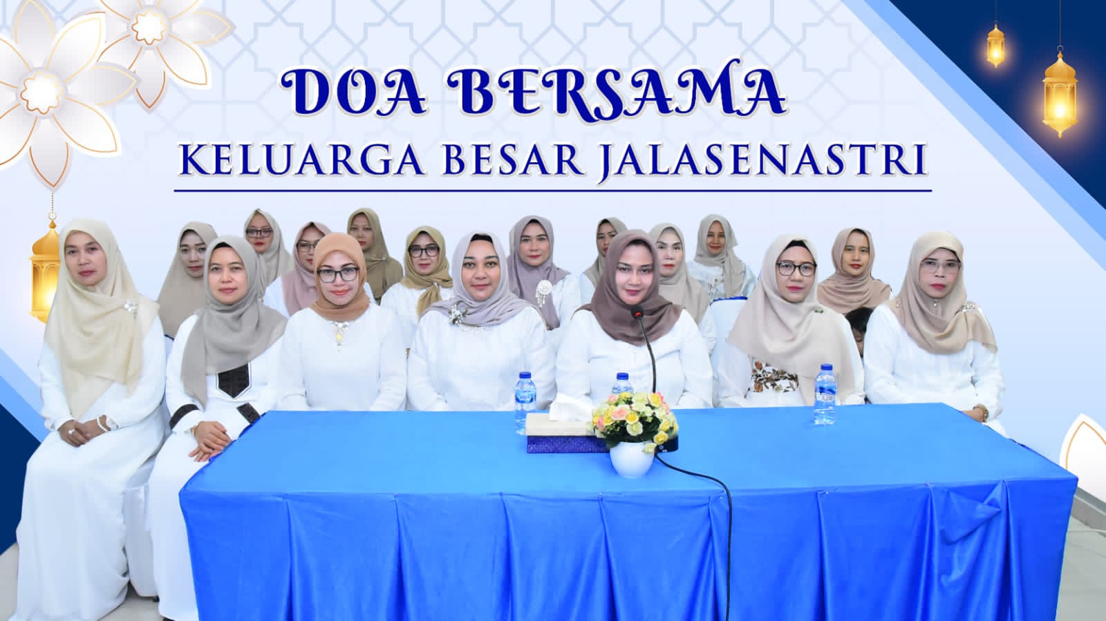 Ketua Umum Jalasenastri dalam sambutannya mengatakan “Saya ucapkan selamat datang kepada dr. Aisah Dahlan CMHt, CM, NLP, di sini telah hadir secara langsung sekitar 100 ibu-ibu anggota Jalasenastri dan 1000 partisipan melalui link zoom serta live streaming melalui channel youtube Jalasenastri. Doa bersama yang diisi ceramah ini mengangkat tema Refleksi dan Rasa Syukur Menyambut Tahun 2024 untuk Keselamatan, Kelancaran dan Kesuksesan Keluarga Besar TNI Angkatan Laut, TNI, Bangsa dan Negara”.