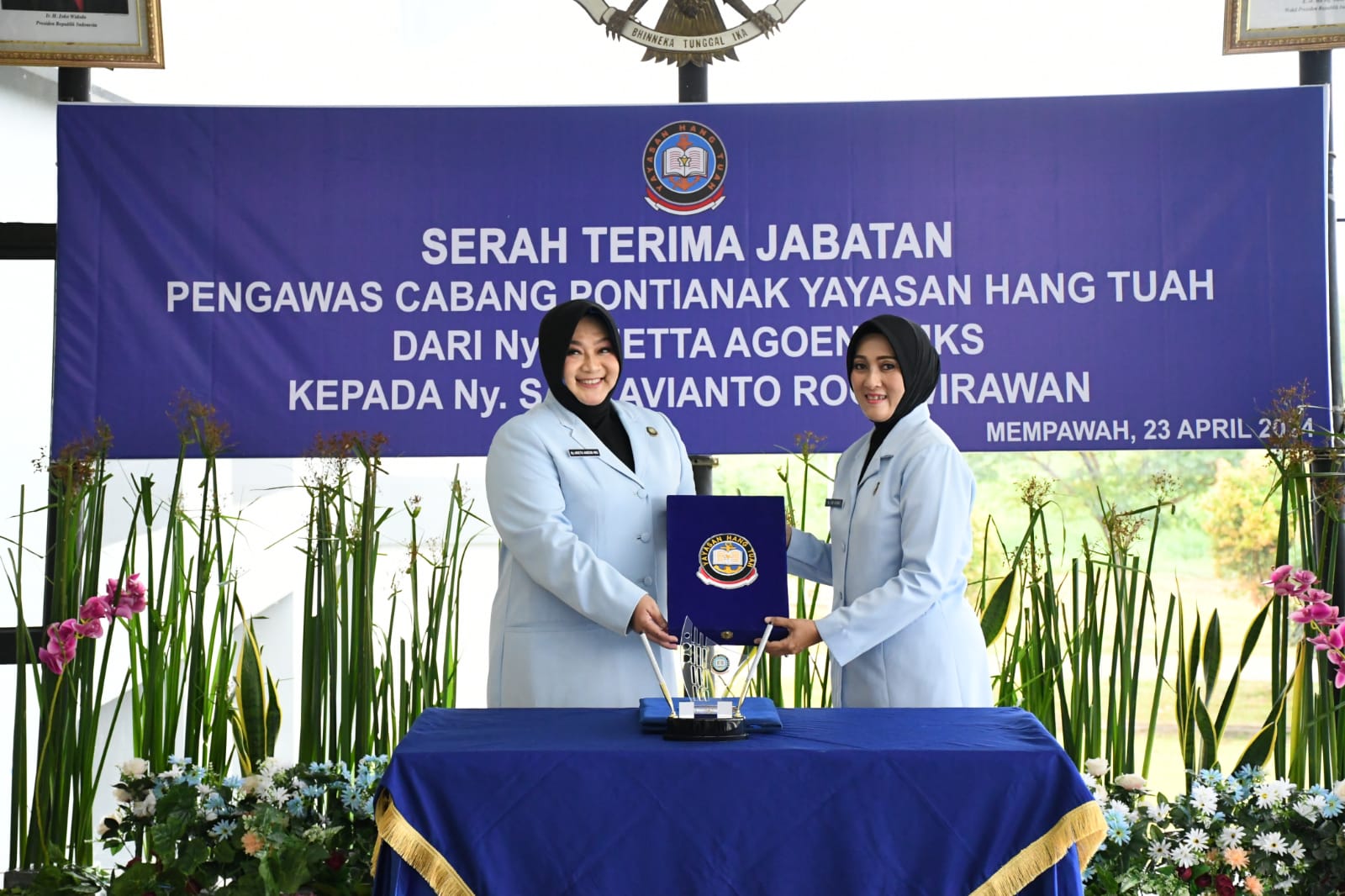 MetropolitanPost.id – Ketua Koordinator Cabang (Korcab) III Daerah Jalasenastri Armada (DJA) I Ny. Neneng Harry Indarto menghadiri serah terima jabatan (Sertijab) Ketua Korcab XII DJA I dan Pengawas Cabang Pontianak Yayasan Hang Tuah (YHT) dari Ny. Arietta Agoeng MKS kepada Ny. Sari Avianto Rooswirawan yang dipimpin langsung oleh Ketua Daerah Jalasenastri Armada I Ny. Yanti Yoos Suryono bertempat di ruang rapat 2 Mako Lantamal XII Pontianak, Kalimantan Barat, Selasa (23/04/2024).