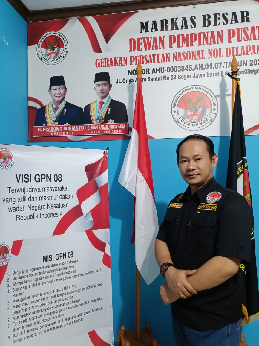 🟡 GPN 08 ialah organisasi relawan pendukung totalitas loyalitas untuk pemenangan Bp Jend (Purn) Prabowo Subianto menjadi presiden RI. dan Gerakan Persatuan Nasional 08 (GPN 08) merupakan wadah konsolidasi kebangsaan yang menghimpun berbagai elemen masyarakat dari kalangan muda, akademisi, pelaku usaha, hingga tokoh adat dan ormas  untuk bersama-sama memperkuat visi Indonesia Berdaulat di bawah kepemimpinan Presiden Prabowo Subianto.(Bar S/Red)