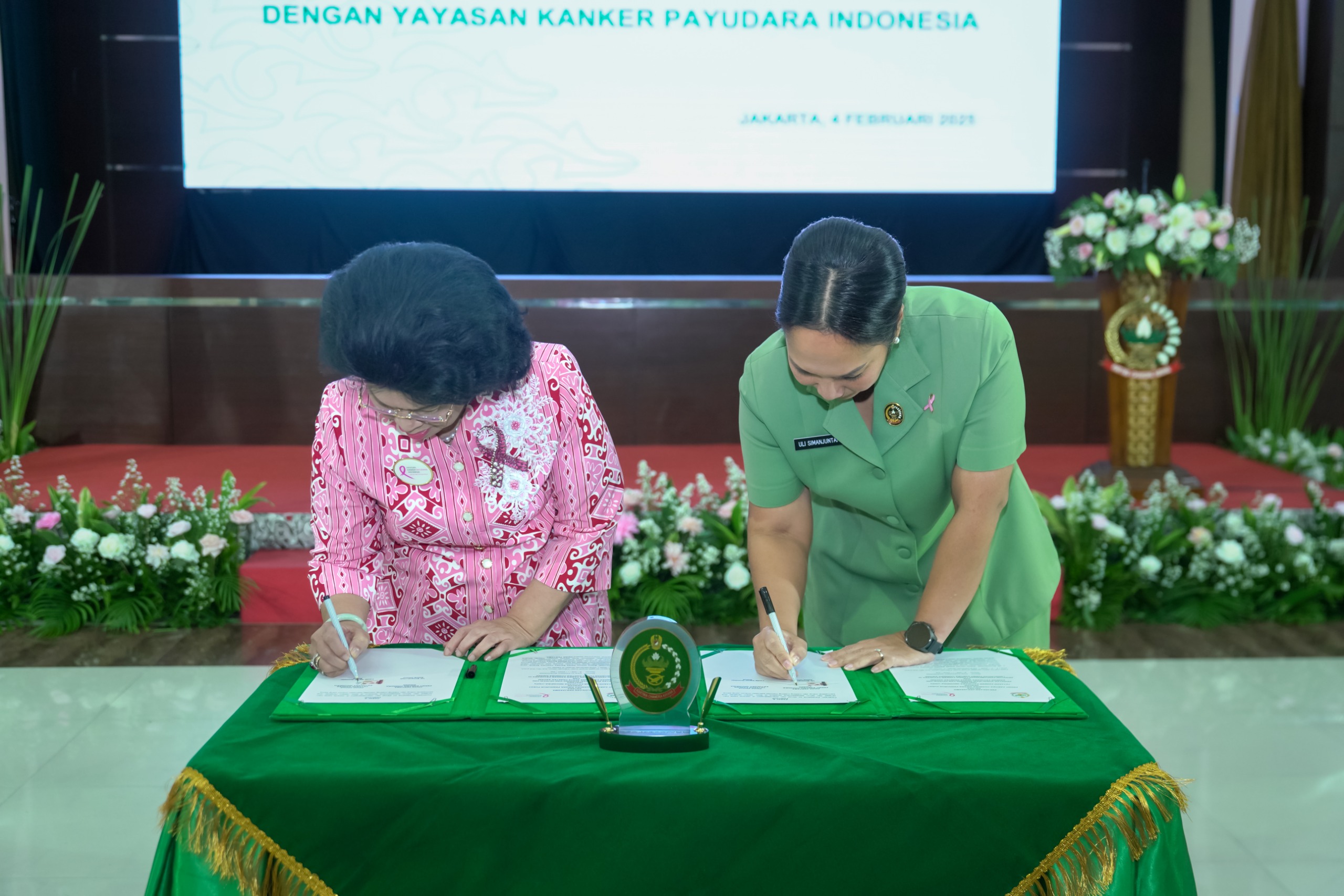Bertepatan dengan Hari Kanker Sedunia (World Cancer Day) Ketua Umum Persit Kartika Chandra Kirana (Persit KCK), Uli Simanjuntak, menandatangani Nota Kesepahaman (MoU) dengan, Linda Agum Gumelar dari Yayasan Kanker Payudara Indonesia (YKPI) sebagai upaya strategis dalam mendukung upaya pencegahan dan penanganan kanker di lingkungan istri prajurit TNI-AD, bertempat di RSPAD Gatot Soebroto Jakarta, Selasa (4/2/2025)