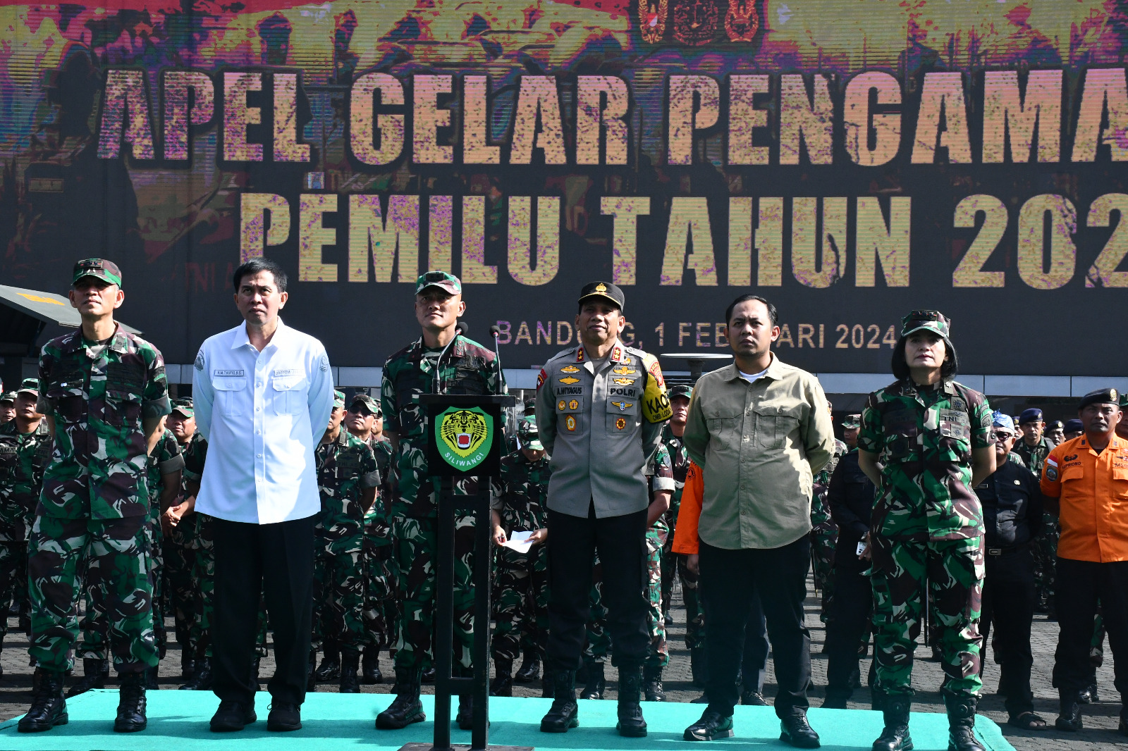 MetropolitanPost.id – Komandan Lanal Bandung Kolonel Laut (KH/W) Dr. Renny Setiowati, S.T., M.Sc., M.Tr.Hanla., beserta Prajurit Lanal Bandung mengikuti Apel Gelar Pasukan secara serentak dalam rangka kesiapan TNI pada Pengamanan Pemilu 2024 secara virtual dengan Panglima TNI Jenderal TNI Agus Subiyanto, di Lapangan Mako 1 Kodam III/Siliwangi, Kamis (01/02/2024).
