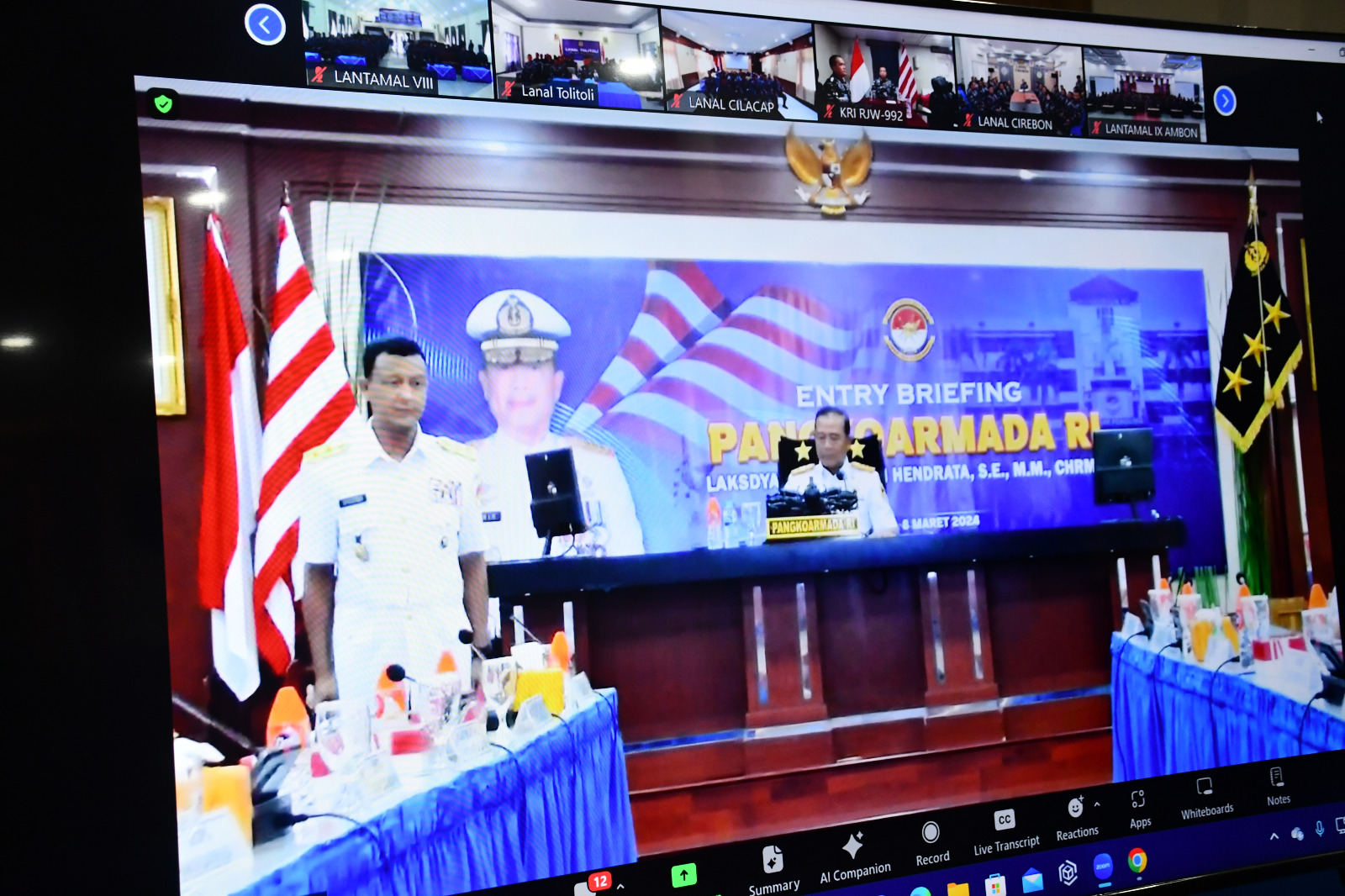 MetropolitanPost.id – Komandan Lanal Bandung Kolonel Laut (KH/W) Dr. Renny Setiowati, S.T., M.Sc., M.Tr. Hanla., mengikuti Entry Briefing Pangkoarmada RI Laksamana Madya TNI Denih Hendrata secara tatap muka dan Video Confrence (Vicon), bertempat di Gedung OB Syaaf Mako Koarmada RI, Jakarta Pusat, Jum’at (8/3/2024). Sementara itu, seluruh Prajurit dan Segenap Pegawai Negeri Sipil (PNS) Lanal Bandung, juga mengikuti Entry Briefing Pangkoarmada RI secara Vicon dari Aula Gedung Mako Lanal Bandung, Jalan Aria Jipang No. 8 Kota Bandung.
