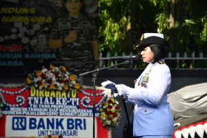 Komandan Pangkalan Angkatan Laut (Danlanal) Bandung Kolonel Laut (KH/W) Dr. Renny Setiowati, S.T., M.Sc., M.Tr.Hanla., memimpin Upacara Peringatan HUT ke-77 TNI Angkatan Laut Tahun 2022, di Lapangan Apel Markas Komando (Mako) Lanal Bandung, Jalan Aria Jipang No. 8 Kota Bandung, Senin (12/9/2022). Bertindak selaku Komandan Upacara Kapten Laut (S) Eko Susanto yang sehari-hari menjabat sebagai Ka. Akun Lanal Bandung.