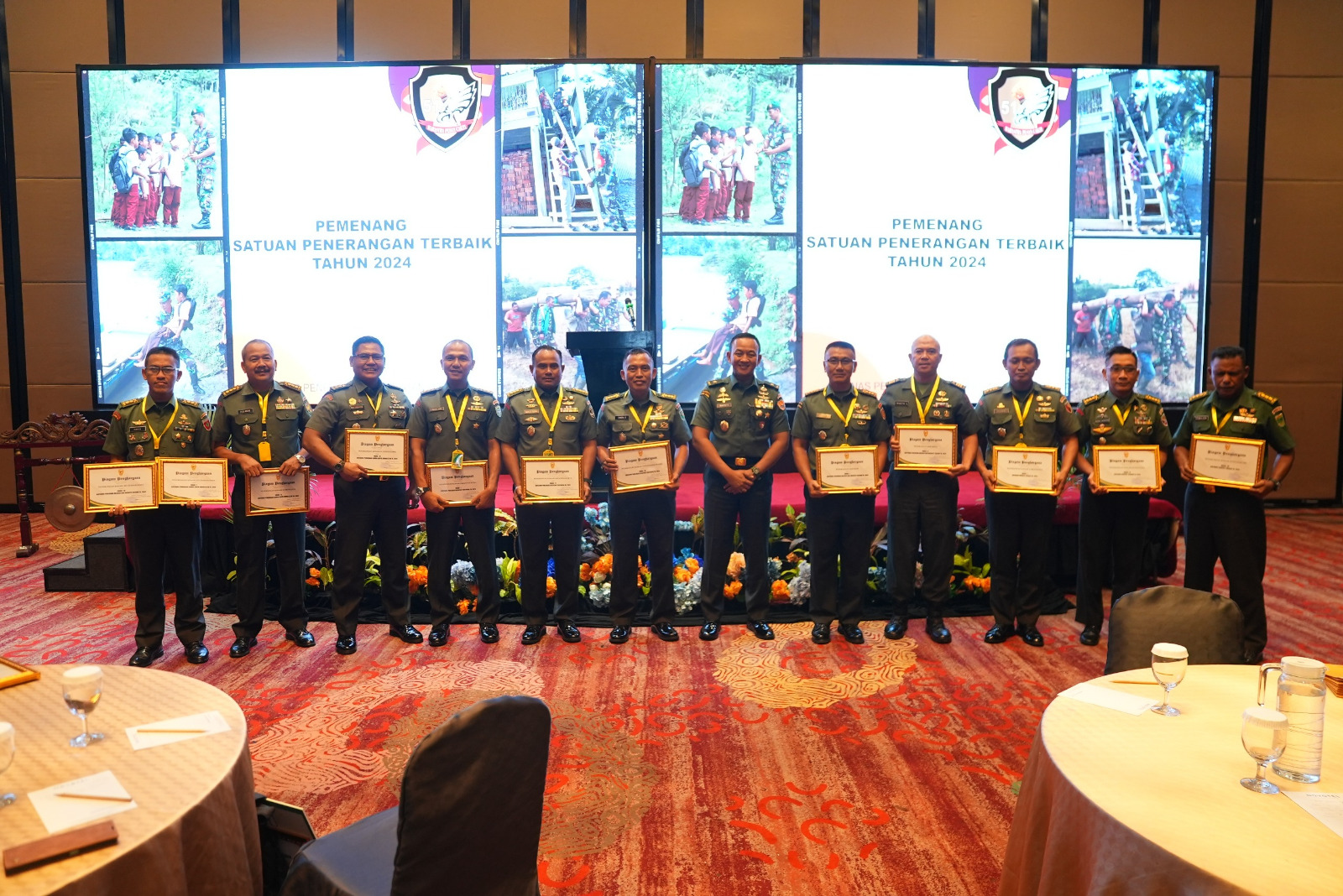 Penerangan Kostrad memborong penghargaan bergengsi sebagai Satuan Penerangan Terbaik Tahun Anggaran TA 2024 yang berlangsung di Hotel Novotel Mangga Dua Square, Jakarta, Kamis (12/12/2024).