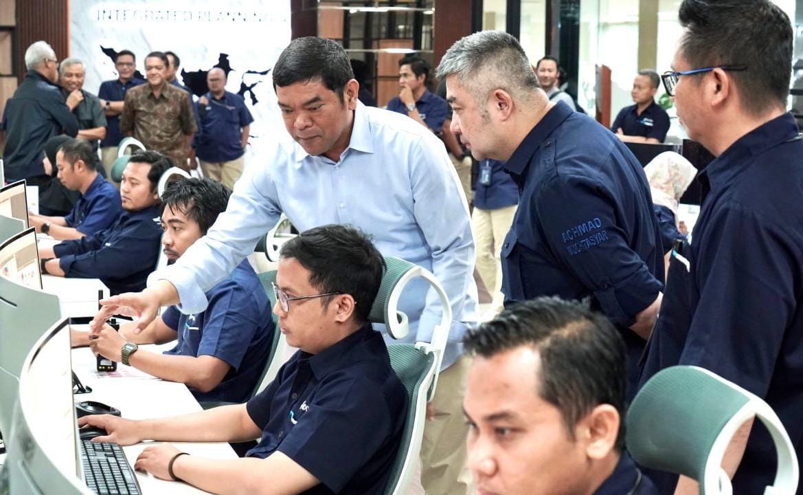 Rombongan meninjau fasilitas Integrated Planning and Control Room, pusat perencanaan dan pengendalian aktivitas terminal berbasis sistem digital dan real-time. Fasilitas ini berperan penting dalam memastikan efektivitas serta efisiensi operasional, mulai dari pergerakan kapal hingga pengelolaan arus peti kemas di lapangan penumpukan.