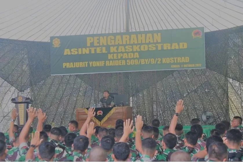 MetropolitanPost.id – Tim Aswas/Dalwas Sintel Kostrad yang dipimpin langsung oleh Asintel Kaskostrad Brigadir Jenderal TNI Imam Sampurno Setiawan ke Yonif Raider 509 Kostrad laksanakan kunjungan dan pengarahan kepada praurit Condromowo. Sukorejo, Kecamatan Sumber Sari, Kabupaten Jember. Selasa (11/10/2022).