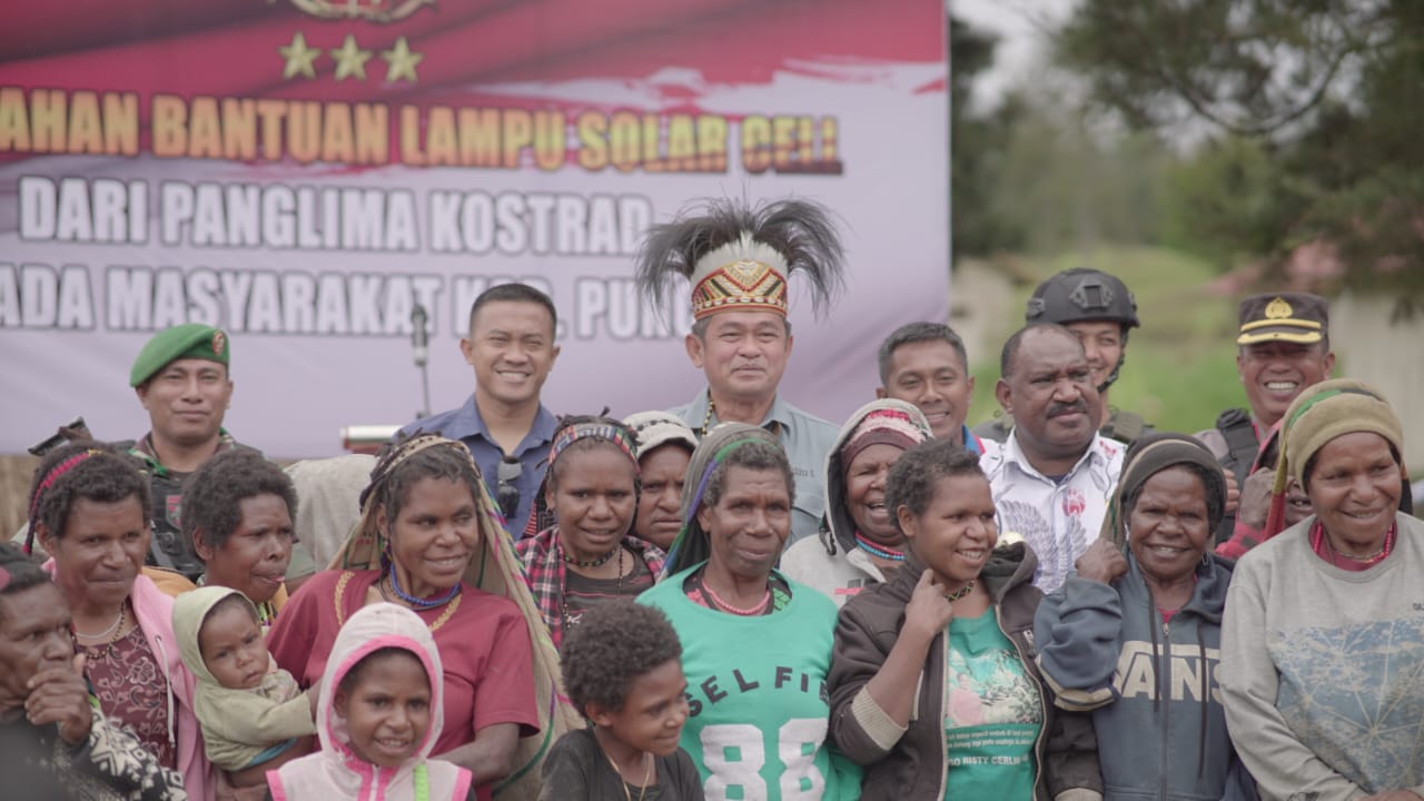 Kemudian Panglima Kostrad secara simbolis menyerahkan bantuan Lampu solar sell untuk membantu masyarakat guna penerangan diwilayah Ilaga. Selain itu Pangkostrad juga memberikan puluhan sembako kepada masyarakat dalam rangka menyambut Hari Ulang Tahun ke-62 Kostrad tahun 2023.