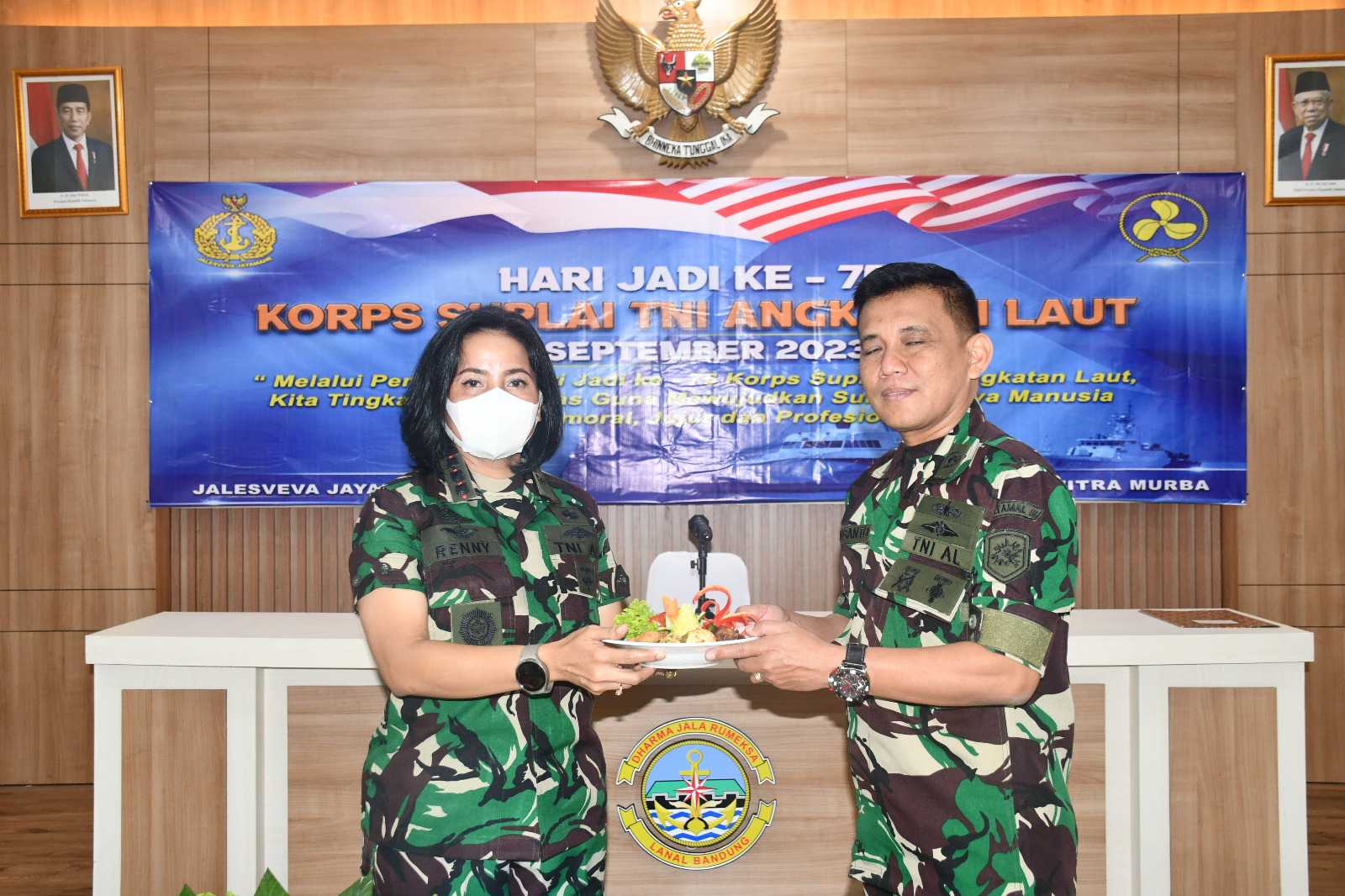 MetropolitanPost.id – Komandan Lanal Bandung Kolonel Laut (KH/W) Dr. Renny Setiowati, S.T., M.Sc., M.Tr.Hanla., pimpin acara Syukuran HUT Ke-75 Korps Suplai TNI AL Tahun 2023, bertempat di Aula Mako Lanal Bandung dan dihadiri seluruh Perwira, Bintara, Tamtama serta PNS Lanal Bandung, Jum’at (01/09/2023).