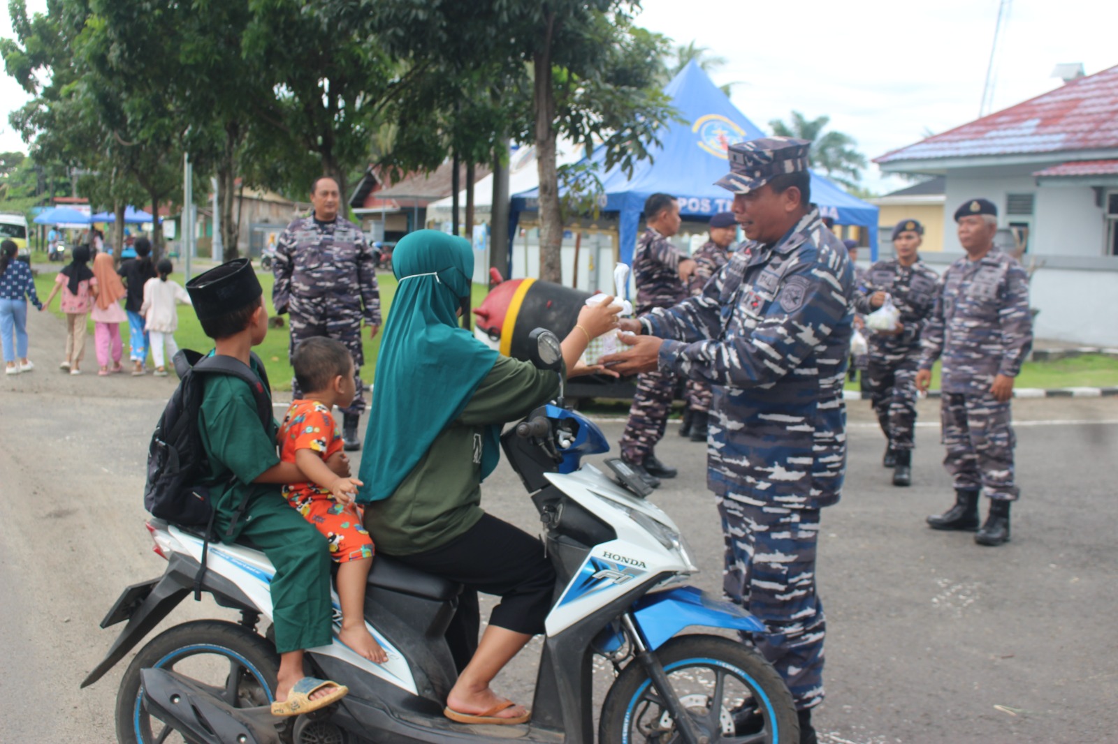 TNI AL, Bengkulu,- Personel Pangkalan TNI Angkatan Laut (Lanal) Bengkulu kembali melakukan aksi bakti sosial berbagi takjil buka puasa kepada masyarakat yang melintas di depan Mako Lanal Bengkulu, Jalan RE. Martadinata No. 10 Kota Bengkulu, Kamis (13/03/2025).