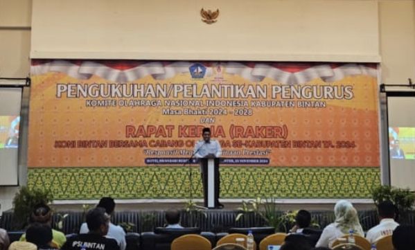 TNI AL, Bintan,- Bertempat di Convension Hall Chat Awandari Hotel telah dilaksanakan kegiatan Pengukuhan/Pelantikan Pengurus KONI Kabupaten Bintan Masa Bakti 2024-2028, Senin (25/11/2024).