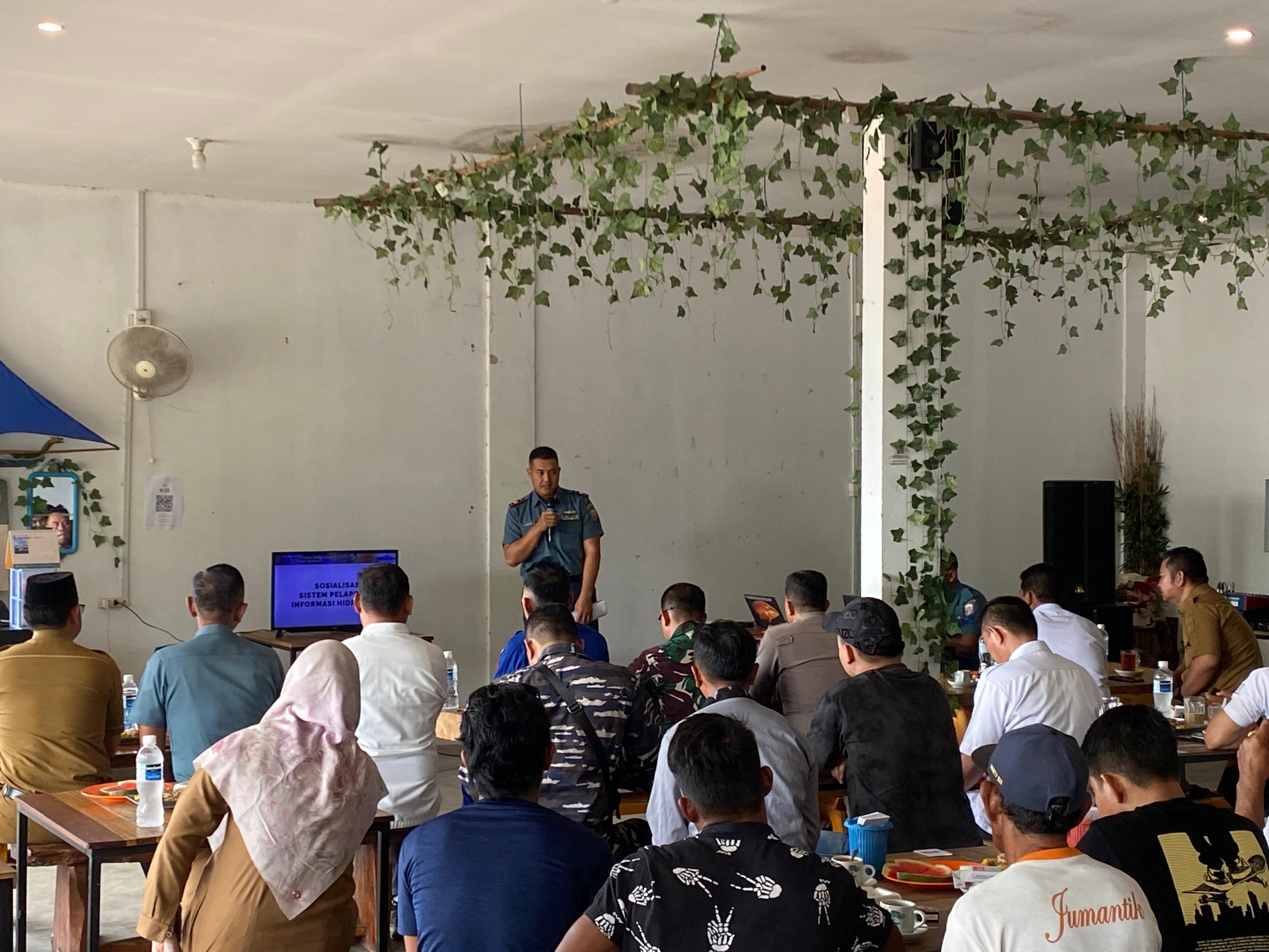 TNI AL, Bintan,- Bertempat di Jongkong Sei Enam, Bintan, Danlanal Bintan Kolonel Laut (P) Dr. Eko Agus Susanto, S.E.,M.M., melaksanakan Coffee Morning dan Sosialisasi Sistem Pelaporan Informasi Hidrografi TNI AL bersama masyarakat maritim di Bintan, Selasa (4/2/2025).