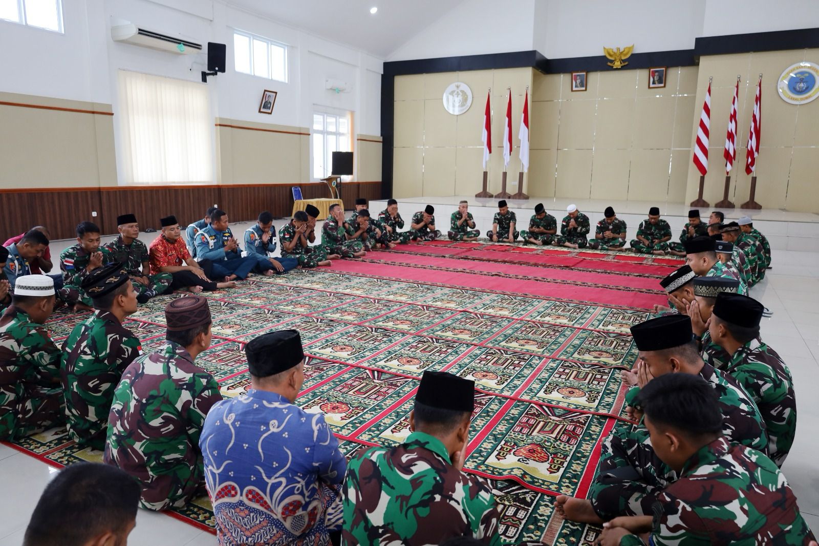Sementara personel beragama Islam melaksanakan Istighosah di Gedung Wijaya Kusuma Lanal Dumai, dipimpin oleh Palaksa Letkol Laut (PM) Priatno, S.H., M.H.