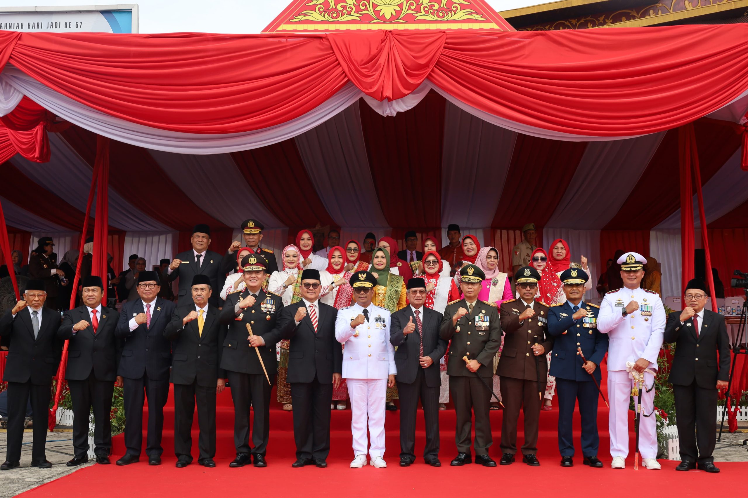 MetropolitanPost.id – Komandan Lanal Dumai Kolonel Laut (P) Boy Yopi Hamel dengan didampingi Ibu Ketua Jalasenastri Cabang 4 Korcab I DJA I Ny. Gressy Hamel beserta Prajurit Lanal Dumai mengikuti Upacara Hari Ulang Tahun (HUT) Ke-79 Republik Indonesia Tingkat Provinsi Riau yang dilaksanakan di Halaman Kantor Gubernur Riau, Jalan Jendral Sudirman No.460, Jadirejo, Kecamatan Sukajadi, Kota Pekanbaru, Riau, Sabtu (17/08/2024).