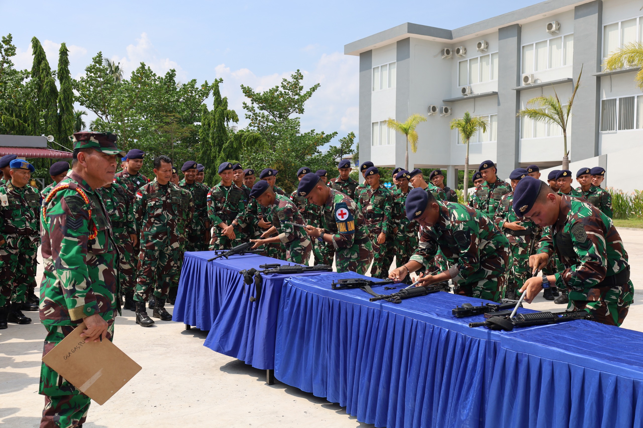 MetropolitanPost.id – Untuk melatih keterpaduan Komando, kendali, komunikasi antar personel dan kerjasama taktis di lapangan, serta meningkatkan keterampilan perorangan maupun kelompok dalam satu satuan operasi, Pangkalan TNI AL Dumai melaksanakan kegiatan Uji Terampil Gladi Tugas Tempur (Glagaspur) Pangkalan TNI AL Tingkat P1/P2 dan L1/L2 dari Kolat Koarmada I. Kegiatan yang dihadiri Komandan Lanal Dumai Kolonel Laut (P) Boy Yopi Hamel dibuka oleh Dankolat Koarmada I diwakili Komandan Puslat Pasrat Kolat Koarmada I Letkol Mar Dodik Eko Siswanto selaku Wakatim, bertempat di Gedung Wijaya Kusuma Mako Lanal Dumai, Jalan Yos Sudarso No. 1 Dumai, Kamis (02/05/2024).