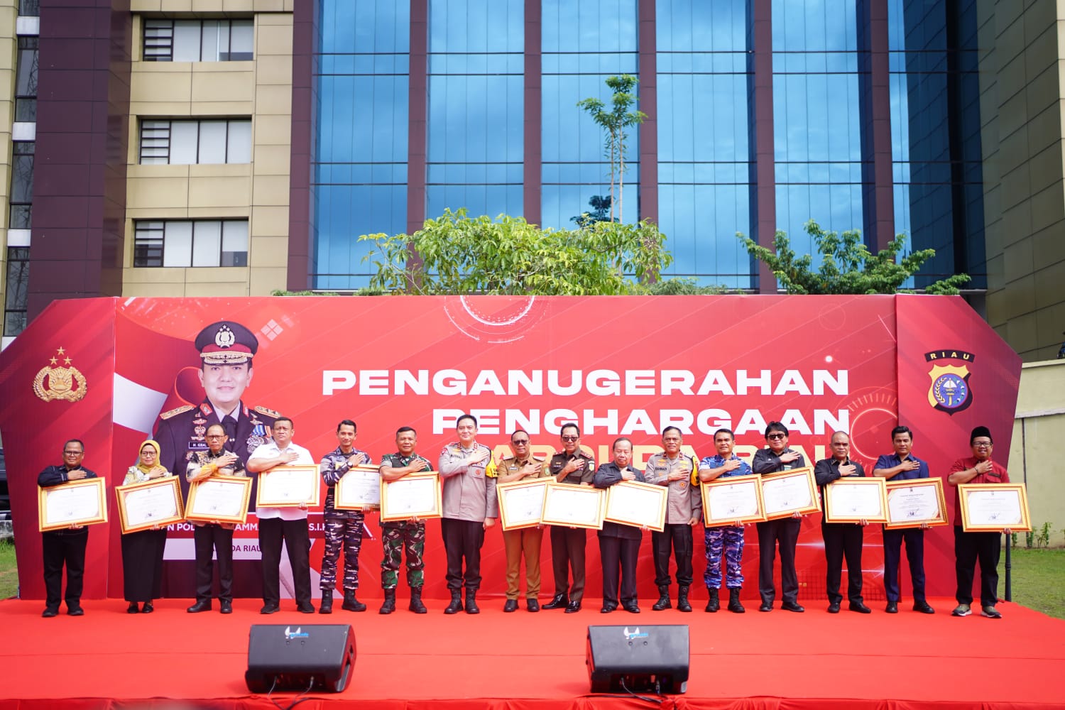 Anugerah penghargaan tersebut diberikan langsung oleh Kapolda Riau Irjen Pol Mohammad Iqbal, S.I.K., M.H., kepada Lanal Dumai dan jajaran Forum Koordinasi Pimpinan Daerah (Forkopimda) sebagai apresiasi karena telah membantu Polda Riau dalam menjaga keamanan dan ketertiban masyarakat di wilayah Provinsi Riau.