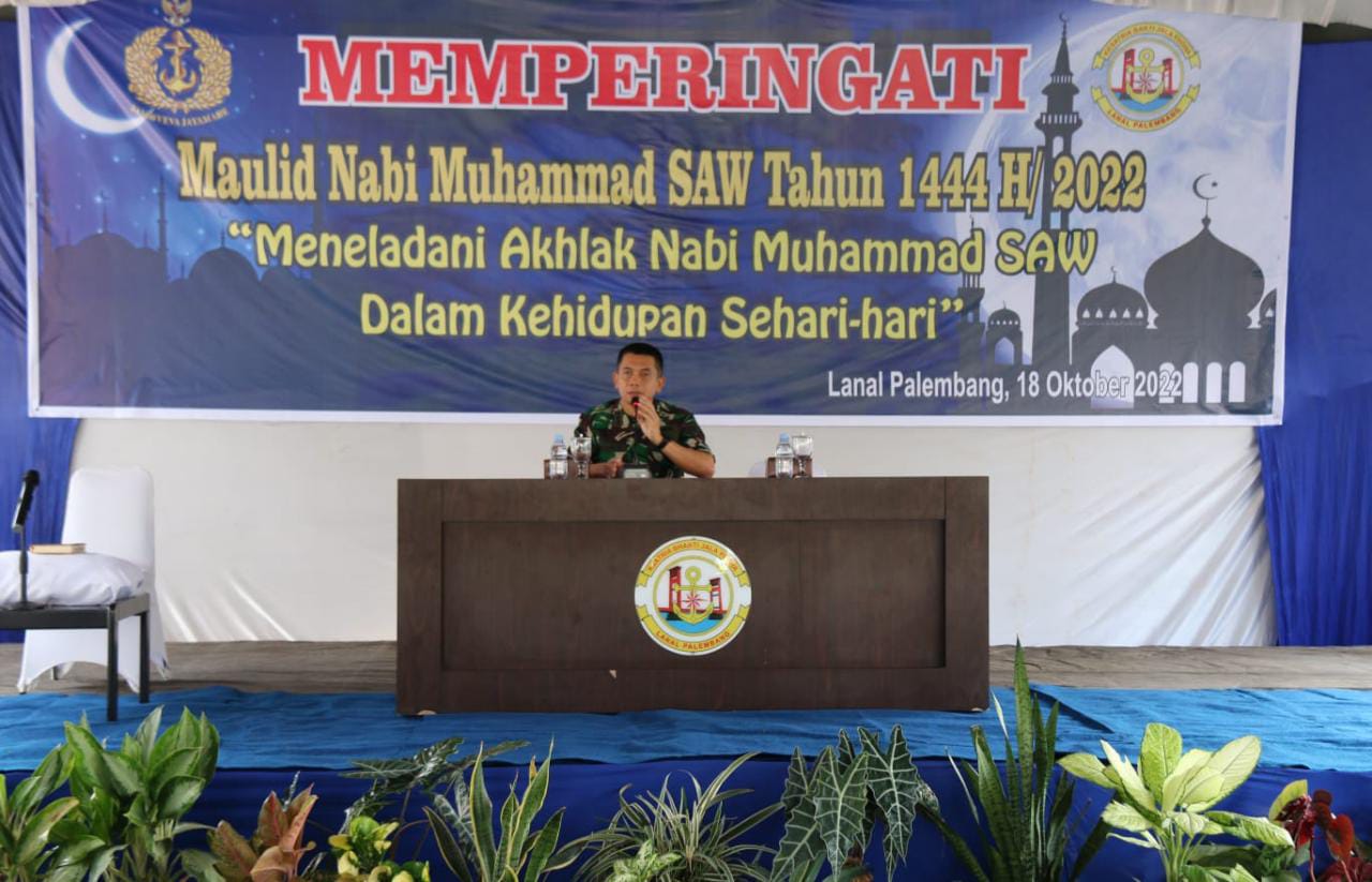 Pangkalan TNI Angkatan Laut (Lanal) Palembang memperingati Maulid Nabi Muhammad SAW Tahun 1444 H/2022, bertempat di Halaman Mako Lanal Palembang, Selasa (18/10/2022).