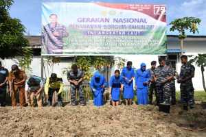 Dalam upaya mendukung program ketahanan pangan bagi personil TNI AL dan masyarakat sekitar, dalam rangka memperingati HUT TNI AL yang ke-77, Danlanal Sibolga memimpin penanaman Sorgum di Lahan Ketahanan Pangan Rumdis TNI AL Komplek OWA, Jalan Sibolga-Barus KM. 4,5 Kecamatan Tapian Nauli, Kabupaten Tapanuli Selatan, Jum’at (09/09/2022).