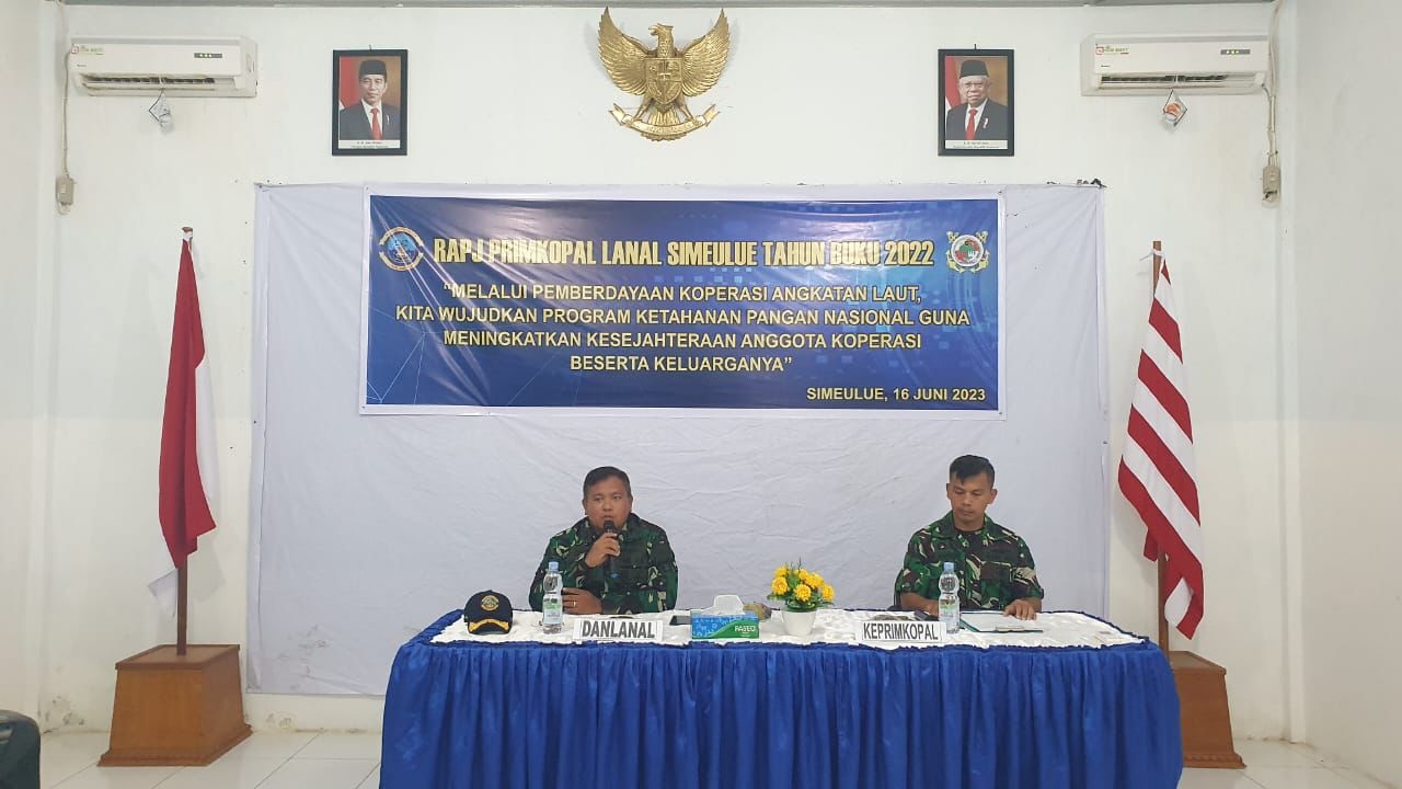MetropolitanPost.id – Primer Koperasi Angkatan Laut (Primkopal) Lanal Simeulue menggelar Rapat Anggota Pertanggungjawaban (RAPJ) Tahun Buku 2022 yang dihadiri personel dari masing-masing Satuan Kerja Lanal Simeulue, Jumat (16/06/2023).