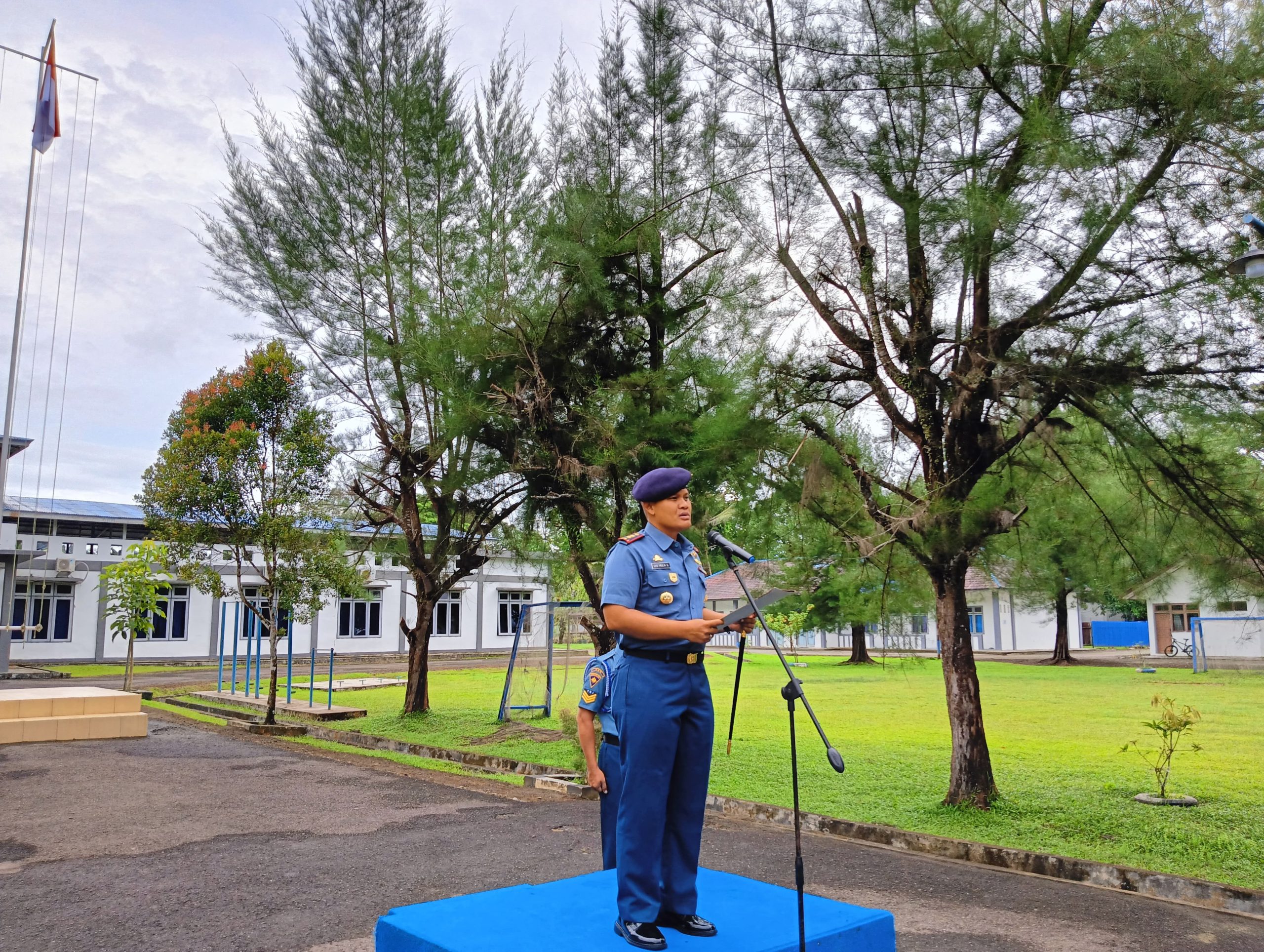 Komandan Pangkalan TNI AL Simeulue selaku Inspektur Upacara membacakan amanat Menteri Komunikasi dan Informatika RI pada Upacara Peringatan Hari Kebangkitan Nasional tanggal 20 Mei 2024.