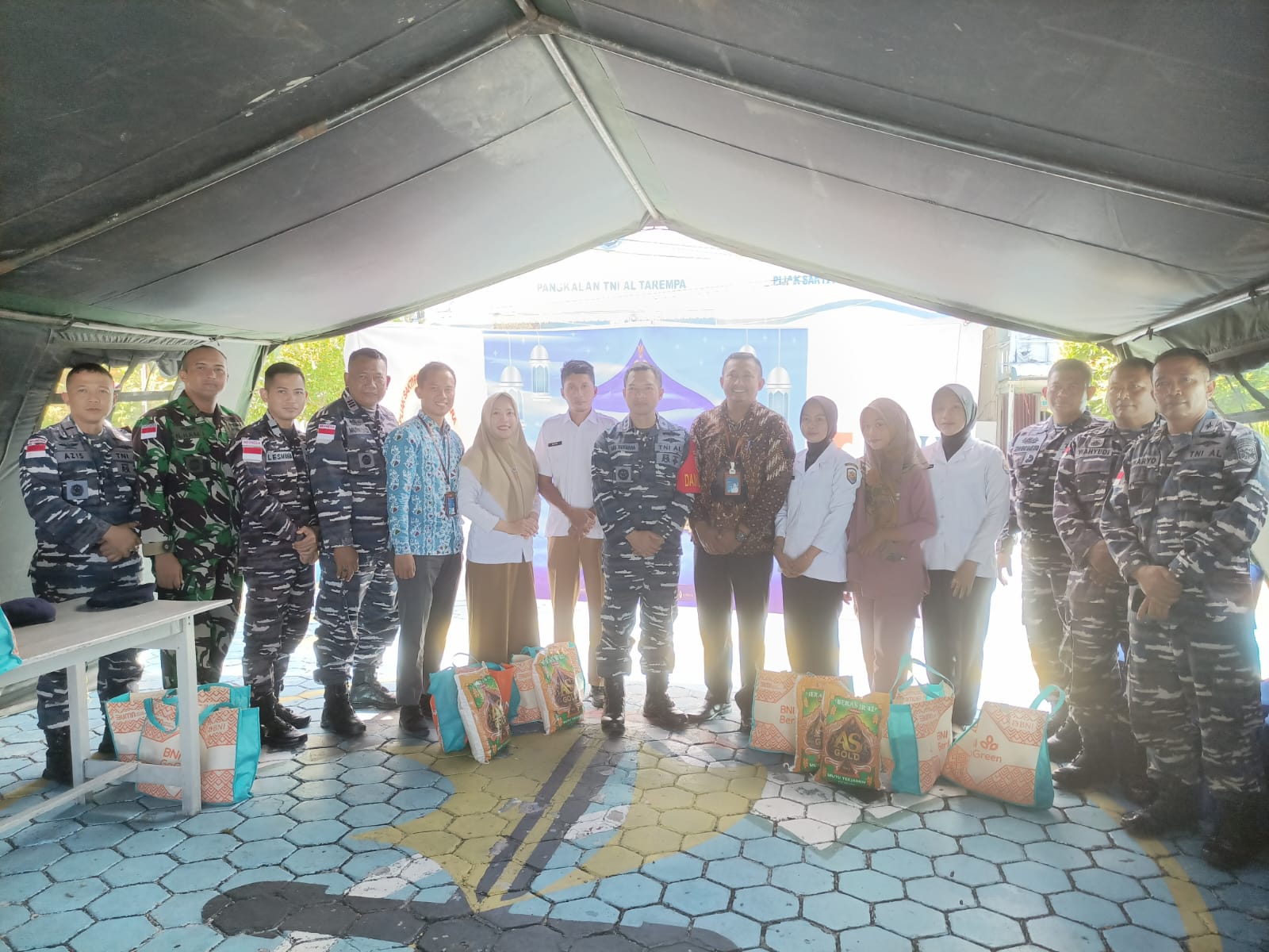 Dalam kesempatan tersebut, di Lanal Tarempa kegiatan yang dihadiri langsung oleh Kepala Bank Nasional Indonesia (BNI) Tarempa, Danlanal Tarempa Letkol Laut (P) Ari Sukmana menyerahkan beberapa paket Lebaran kepada warga dan Prajurit Lanal Tarempa.
