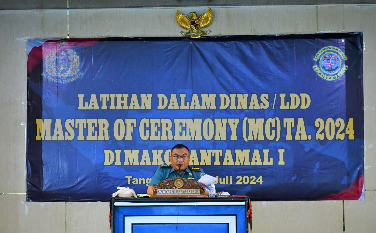 TNI AL, Belawan,- Komandan Pangkalan Utama TNI Angkatan Laut I (Danlantamal I) Brigjen TNI (Mar) Jasiman Purba, S. E., CHRMP., yang diwakili Wadan Lantamal I Kolonel Laut (P) Siswo Widodo, S.T., membuka Latihan Dalam Dinas (LDD) Pelatihan Master Of Ceremony (MC), bertempat di Gedung OB. Syaaf Mako Lantamal I, Jalan Serma Hanafiah No. 01 Belawan, Sumatera Utara, Selasa (02/7/2024).