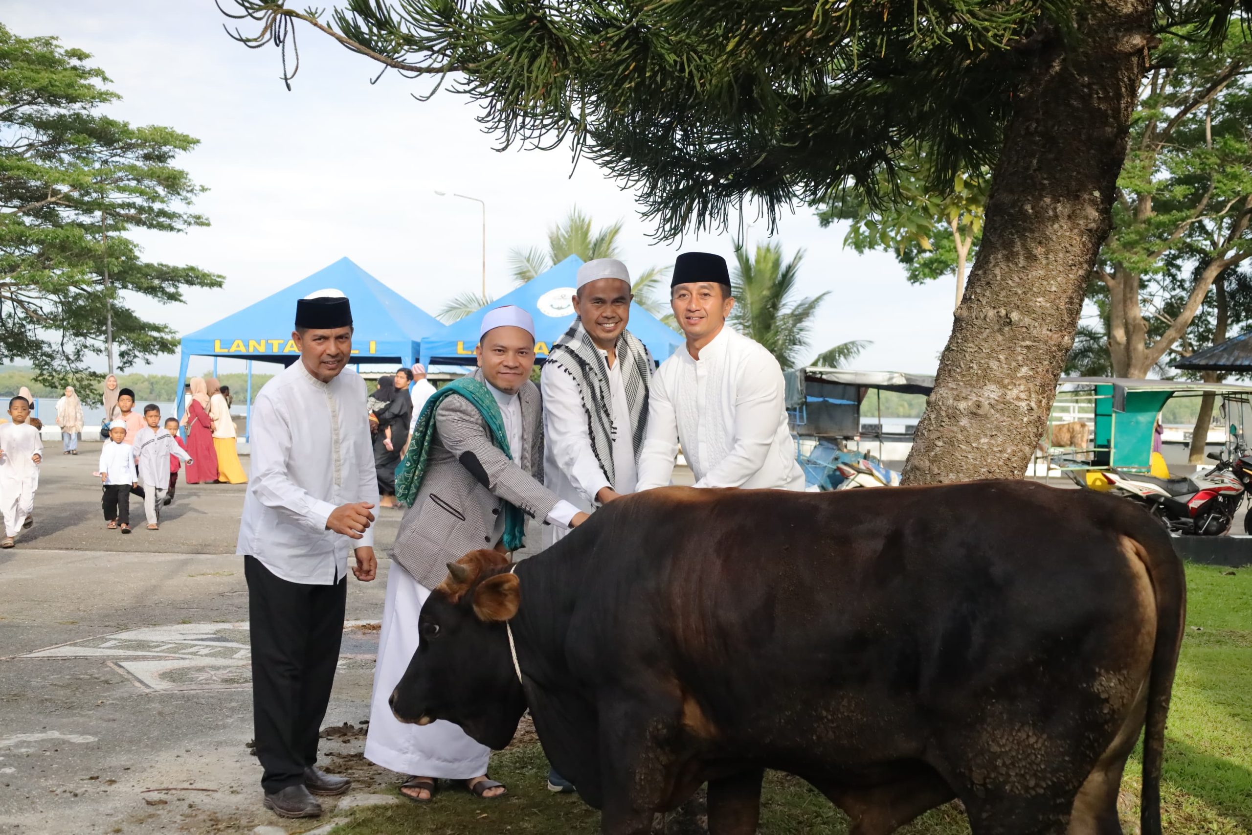 Selesai Shalat Idul Adha dilaksanakan ramah tamah, yang dilanjutkan dengan penyerahan Hewan Qurban. Panitia Idul Adha Lantamal I menerima sejumlah 3 ekor sapi dan 13 ekor kambing, untuk dilaksanakan penyembelihan dan dibagikan kepada masyarakat sekitar Belawan, anak yatim piatu dan tukang becak, serta PHL Mako Lantamal I.