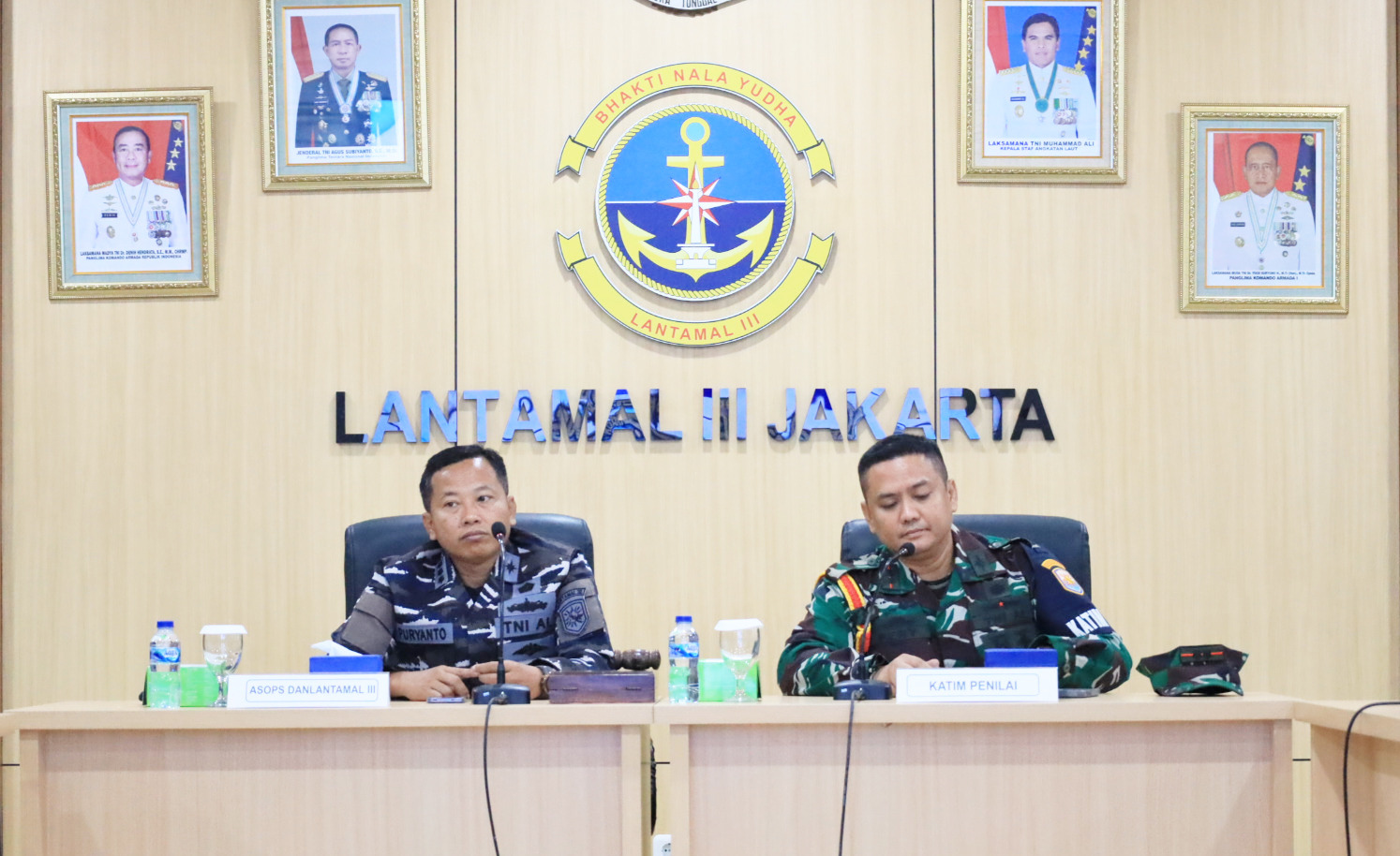 TNI AL-Dispenlantamal3. Komandan Pangkalan Utama TNI Angkatan Laut (Danlantamal) III Jakarta Brigjen TNI (Mar) Harry Indarto, S.E., M.M. diwakili Asisten Operasi (Asops) Danlantamal III Jakarta Kolonel Laut (P) Puryanto menghadiri Pembukaan Pelaksanaan Uji Terampil Gladi Tugas Tempur Pertahanan Pangkalan (Glagaspur Hanlan) Tingkat 1/P-1 dan Tingkat 2/P-2 Lantamal III Jakarta yang dibuka oleh Wadan Kolat Koarmada I Letkol Laut (P) Fery Anton S., M.Tr.Opsla. mewakili Panglima Komando Armada (Pangkoarmada) I Laksda TNI Dr. Yoos Suryono Hadi, M.Tr.(Han)., M.Tr.Opsla. bertempat di ruang rapat besar Mako Lantamal III Jakarta Jl. Gunung Sahari No. 2, Jakarta Utara, Senin (04/11/2024).