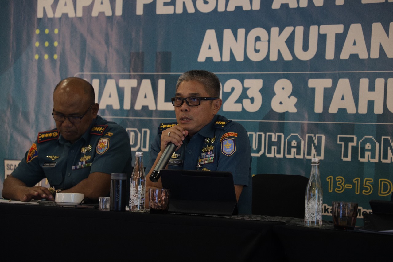 MetropolitanPost.id – Komandan Pangkalan Utama TNI Angkatan Laut (Danlantamal) III Jakarta Brigjen TNI (Mar) Harry Indarto, S.E., M.M. diwakili oleh Wakil Komandan (Wadan) Lantamal III Jakarta Kolonel Laut (P) Whisnu Kusardianto, S.E., M.H. menghadiri rapat persiapan penyelenggaraan angkutan Natal 2023 dan tahun baru 2024 (Nataru) yang dipimpin Kepala Kantor Kesyahbandaran dan Otoritas Pelabuhan (KSOP) Utama Tanjung Priok M. Takwim Masuku, S.T., M.M.T. bertempat di The 101 Jakarta Airport CBC Hotel Jl. CBC Raya 2 No. 1 Benda, Kota Tangerang, Rabu (13/12/2023).
