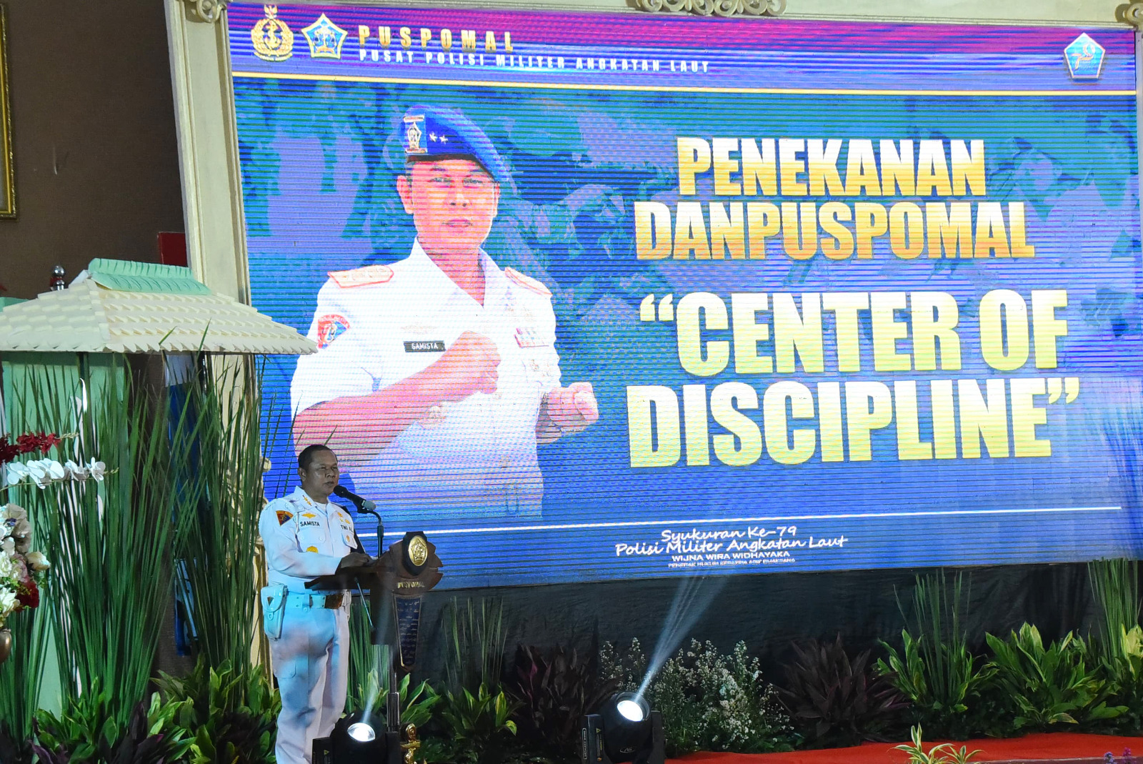 Kasal dalam sambutannya yang dibacakan Danpuspomal mengatakan “Peringatan HUT ke-79 Pomal adalah perwujudan rasa syukur kepada Tuhan Yang Maha Esa bahwa prajurit Pomal dapat memberikan pengabdian terbaik selama 79 tahun. Hal ini ditandai dengan meningkatnya disiplin anggota dan ketaatan kepada hukum yang cukup tinggi serta terjaganya citra baik TNI Angkatan Laut di mata masyarakat. Momentum ini menjadi kesempatan untuk melaksanakan evaluasi dan introspeksi diri guna menilai sejauh mana pengabdian dan kinerja Pomal dalam organisasi TNI Angkatan Laut. Dengan semboyan “Wijna Wira Widhayaka” mempunyai arti penegak hukum yang berwatak kesatria, arif, dan bijaksana menuntut Pomal untuk tetap kokoh dan tidak diskriminatif dalam melaksanakan fungsi, wewenang, dan tanggung jawabnya, serta mampu menjadi suri tauladan dalam kepatuhan terhadap hukum dan tata tertib yang berlaku”.