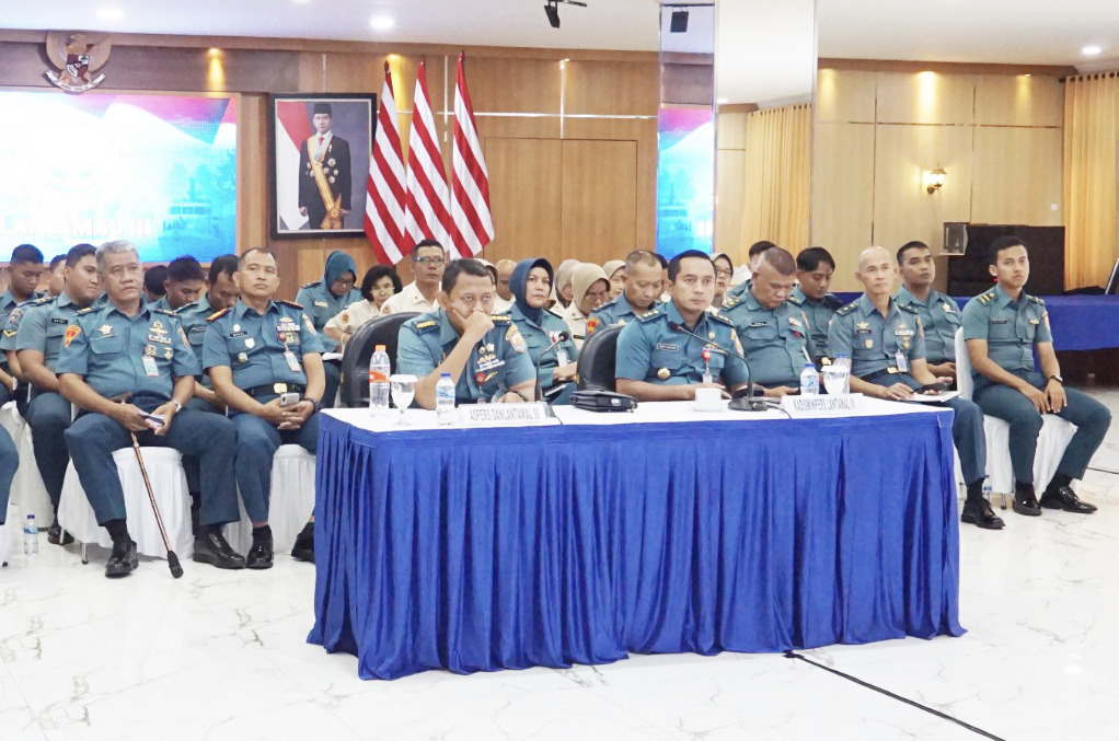 TNI AL-Dispenlantamal3. Komandan Pangkalan Utama TNI Angkatan Laut (Danlantamal) III Jakarta Brigjen TNI (Mar) Harry Indarto, S.E., M.M. diwakili Asisten Personalia (Aspers) Danlantamal III Jakarta Kolonel Laut (S) Dr. Arie Herumurti, S.T., M.A.P., M.Tr.Hanla., CHRMP, CACA. mengikuti Bimbingan Teknis (Bimtek) Bidang Administrasi Personel Militer dan Aparatur Sipil Negara (ASN) di lingkungan TNI Angkatan Laut TA 2024 bertempat di gedung serbaguna (GSG) Mako Lantamal III Jakarta Jl. Gunung Sahari No. 2, Jakarta Utara, Selasa (10/12/2024).