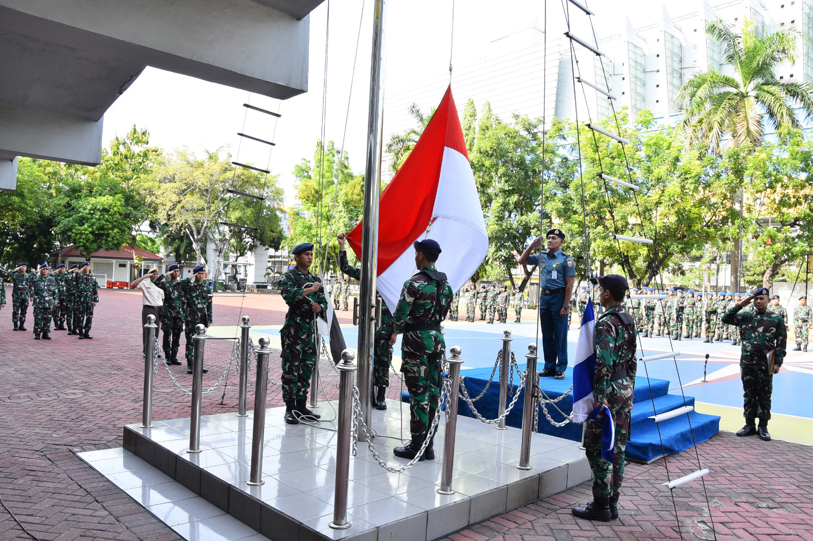 TNI AL-Dispenlantamal3. Komandan Pangkalan Utama TNI Angkatan Laut (Danlantamal) III Jakarta Brigjen TNI (Mar) Harry Indarto, S.E., M.M. diwakili Kepala Dinas Potensi Maritim (Kadispotmar) Lantamal III Jakarta Letkol Laut (KH) Nova Idrianto, S.T. menggelar apel gabungan dan upacara bendera yang diikuti seluruh prajurit dan Pegawai Negeri Sipil (PNS) di lingkungan Lantamal III Jakarta dengan membacakan amanat Panglima TNI Jenderal TNI Agus Subiyanto, S.E., M.Si. bertempat di lapangan apel Mako Lantamal III Jakarta Jl. Gunung Sahari No. 2, Jakarta Utara, Senin (17/10/2024).