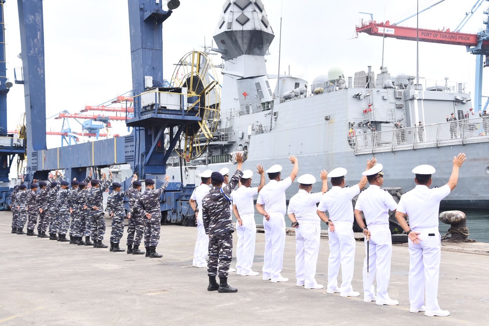 MetropolitanPost.id – Asinten Operasi (Asops) Danlantamal III Kolonel Laut (P) Agung Nugroho, S.E., M.Tr. Hanla mewakili Komandan Lantamal III Jakarta Brigjen TNI (Mar) Umar Farouq, S.A.P., CHRMP.,M.Tr.Opsla., M.Han melepas Kapal Perang Angkatan Laut Australia HMAS Anzac (FF150) dan HMAS Adelaide (L01) serta Kapal Perang Pakistan PNS Nars dan PNS Shamsheer di Pelabuhan JICT II, Tanjung Priuk Jakarta Utara, Sabtu(26/11/2022).