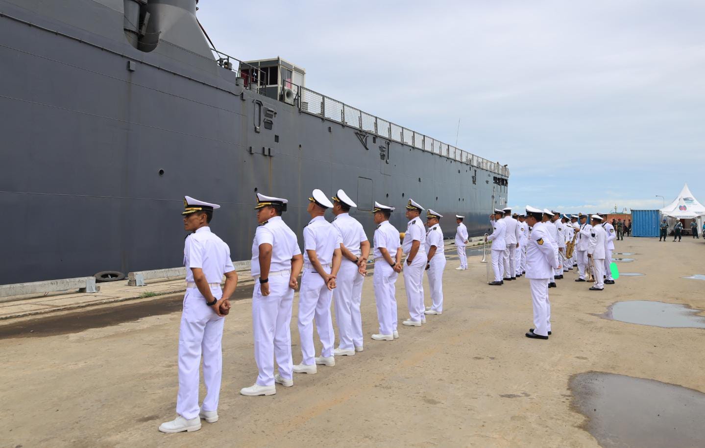 TNI AL-Dispenlantamal3. Komandan Pangkalan Utama TNI Angkatan Laut (Danlantamal) III Jakarta Brigjen TNI (Mar) Harry Indarto, S.E., M.M. diwakili oleh Kepala Dinas Fasilitas Pangkalan (Kadisfaslan) Lantamal III Jakarta Letkol Laut (KH) Suwandi, M.T., M.Tr.Hanla. melepas keberangkatan Kapal Perang Angkatan Laut Singapura (Republic of Singapore Ship/RSS) Endurance (207) dengan Komandan Lieutnant Colonel Lo Wen Jie Mereith bertempat di dermaga IKT pelabuhan Tanjung Priok, Jakarta Utara, Kamis (05/12/2024).